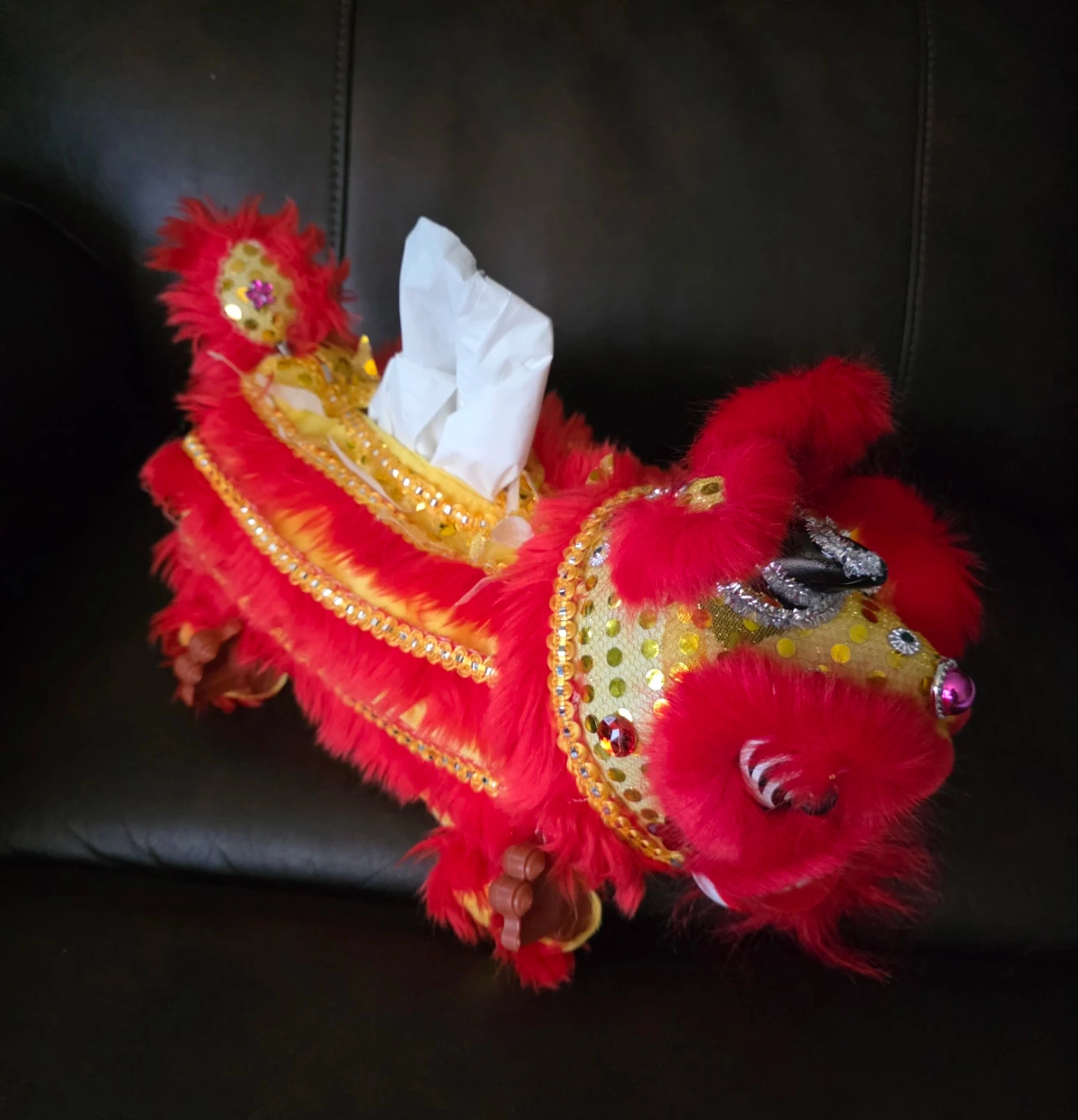 This is a fun and unique lion dance tissue box cover. Ideal for Chinese New Year.