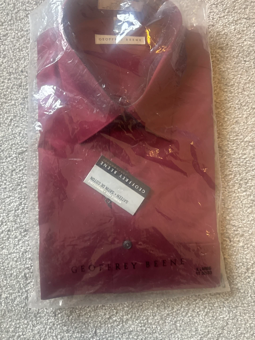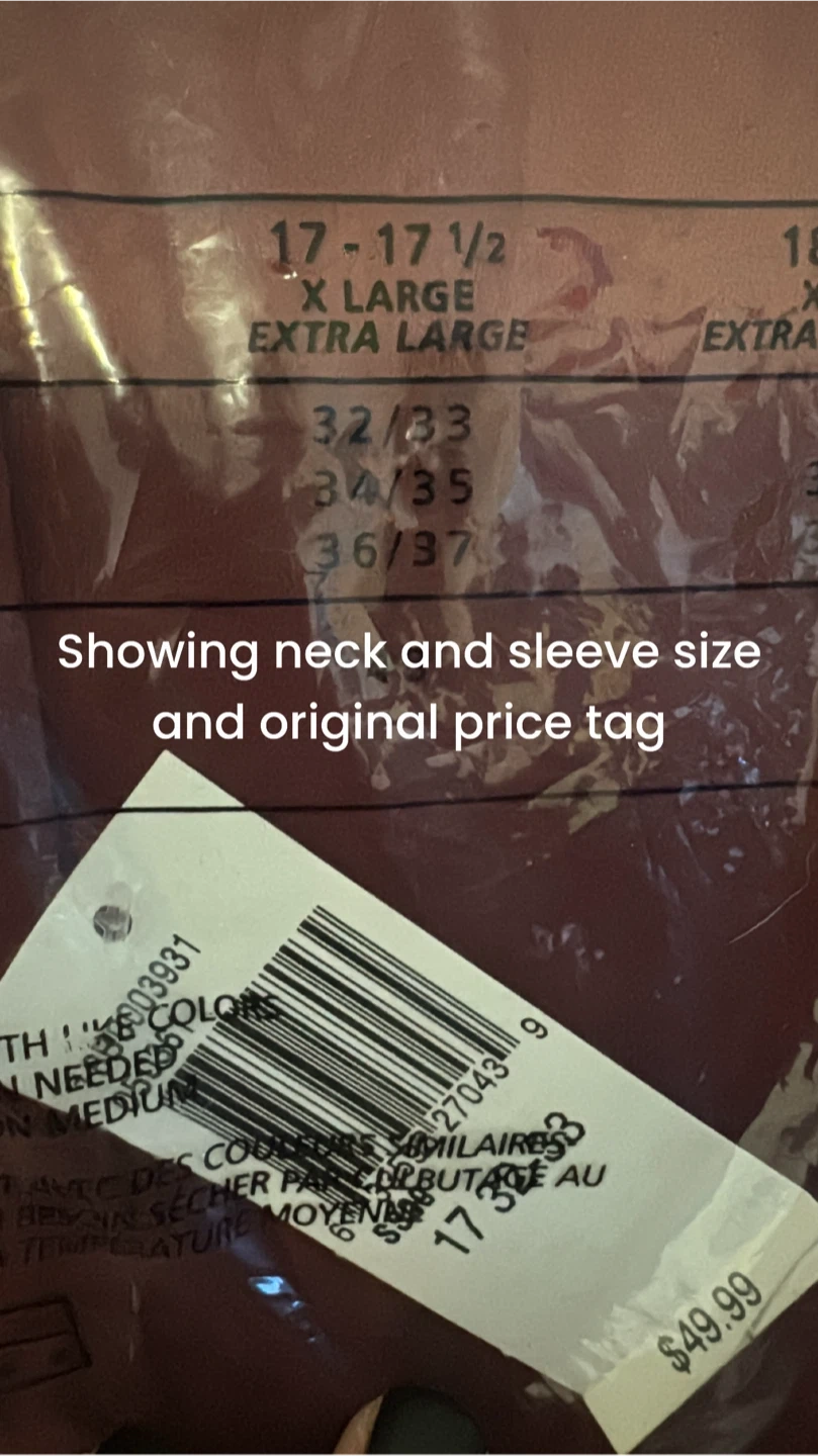 I have a brand new Geoffrey Beene dress shirt for sale. It's an extra large, with neck size 17-17 1/2 and sleeve size 32/33. The original price tag is still on it, showing $49.99
