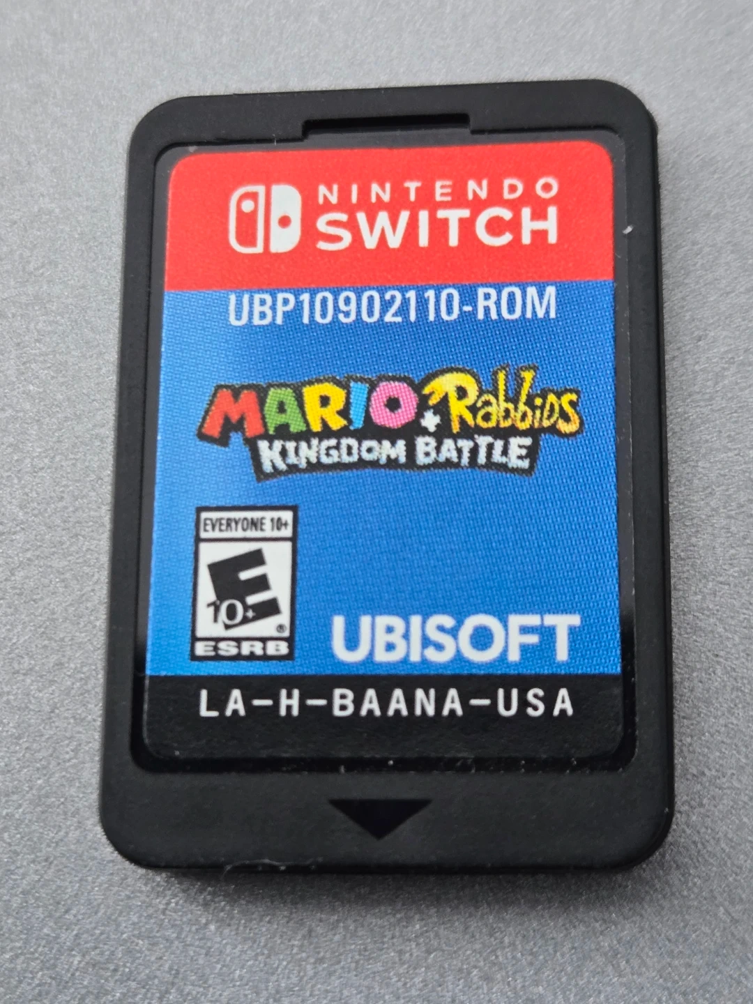 Selling Mario + Rabbids Kingdom Battle for the Nintendo Switch! This game is rated E for Everyone 10+ and is published by Ubisoft. It's a fun strategy adventure for all ages!