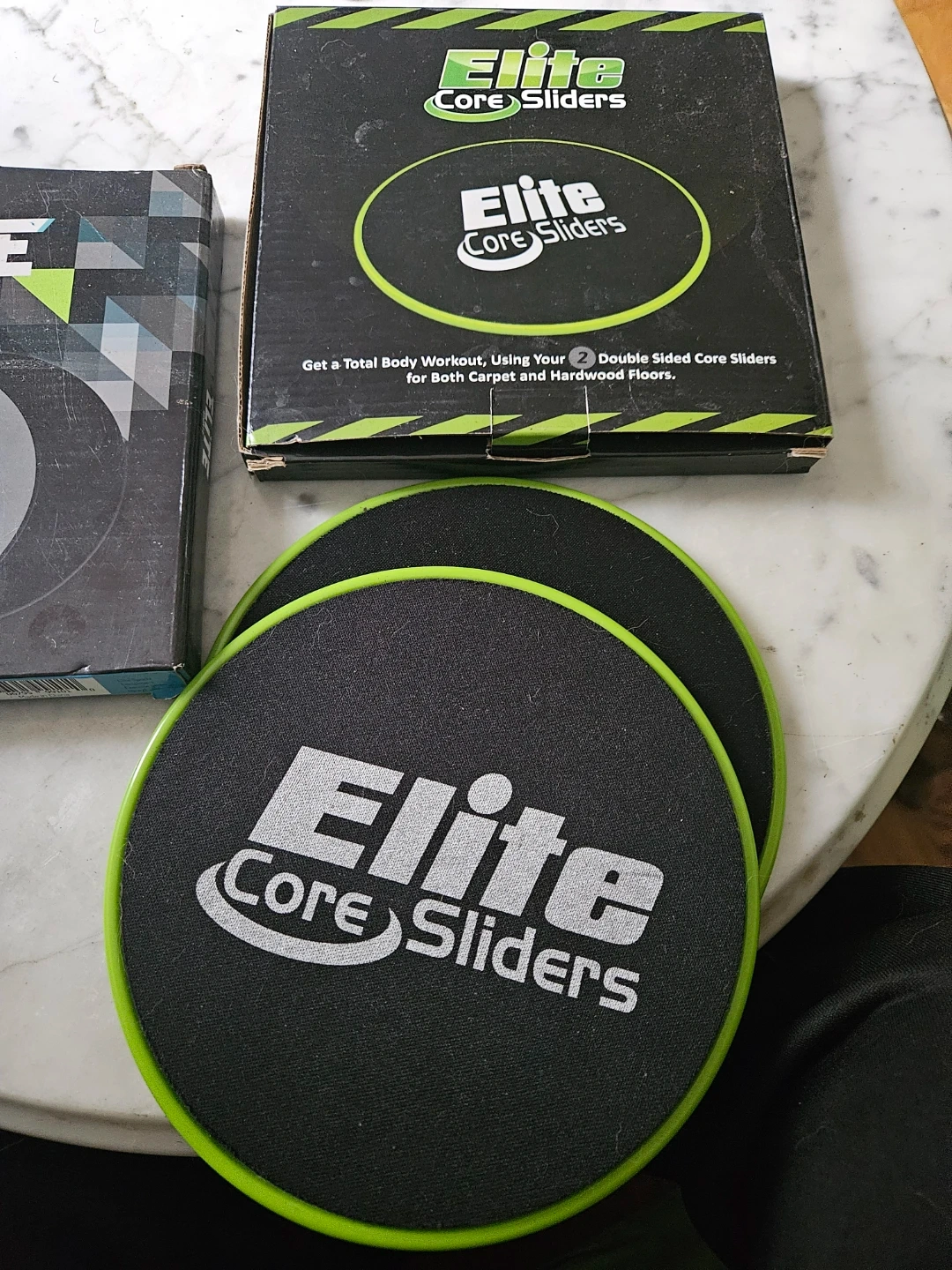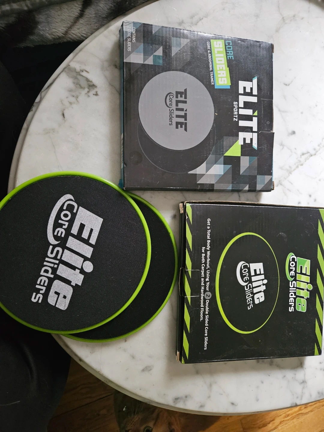 2 boxes. Each box is sold separately. If you want both, and pick up same day. $10 for both. Get a great addition for your home gym with these Elite Sportz Core Sliders! They give variety to a workout and work great on carpet and hardwood floors. They're lightweight, portable, and convenient, making them appropriate for all fitness levels. Includes the box!