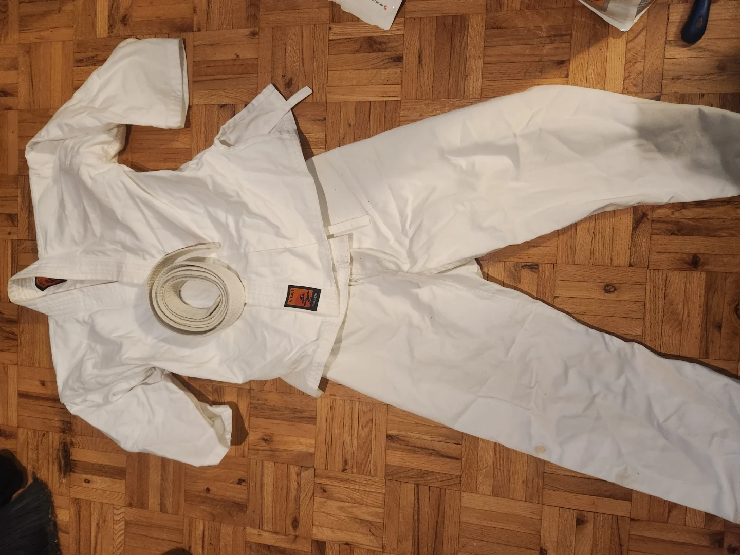 My kid was 7 when he started akido, and that was in November of 2019, so he didnt do it for long, its in very good shape. He was big for his age so I think with the conversion this is meant to fit an 8-9 year old.