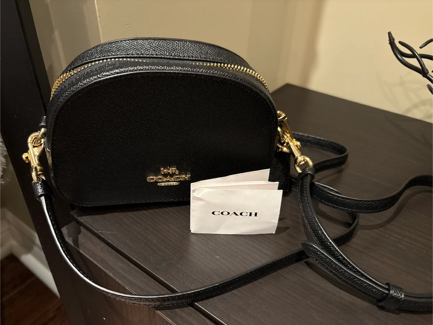 Selling a cute Coach crossbody bag in black leather! It's in great condition and perfect for everyday use. The gold hardware adds a touch of elegance, and it's just the right size for your essentials