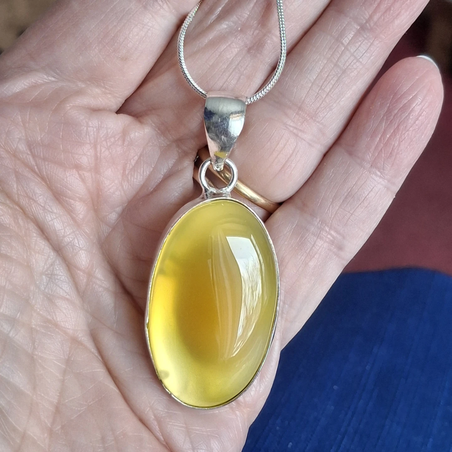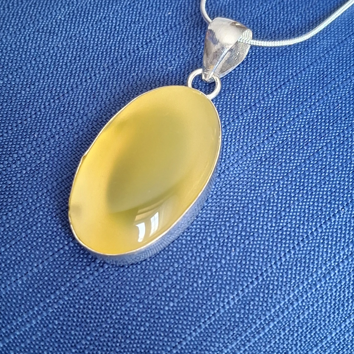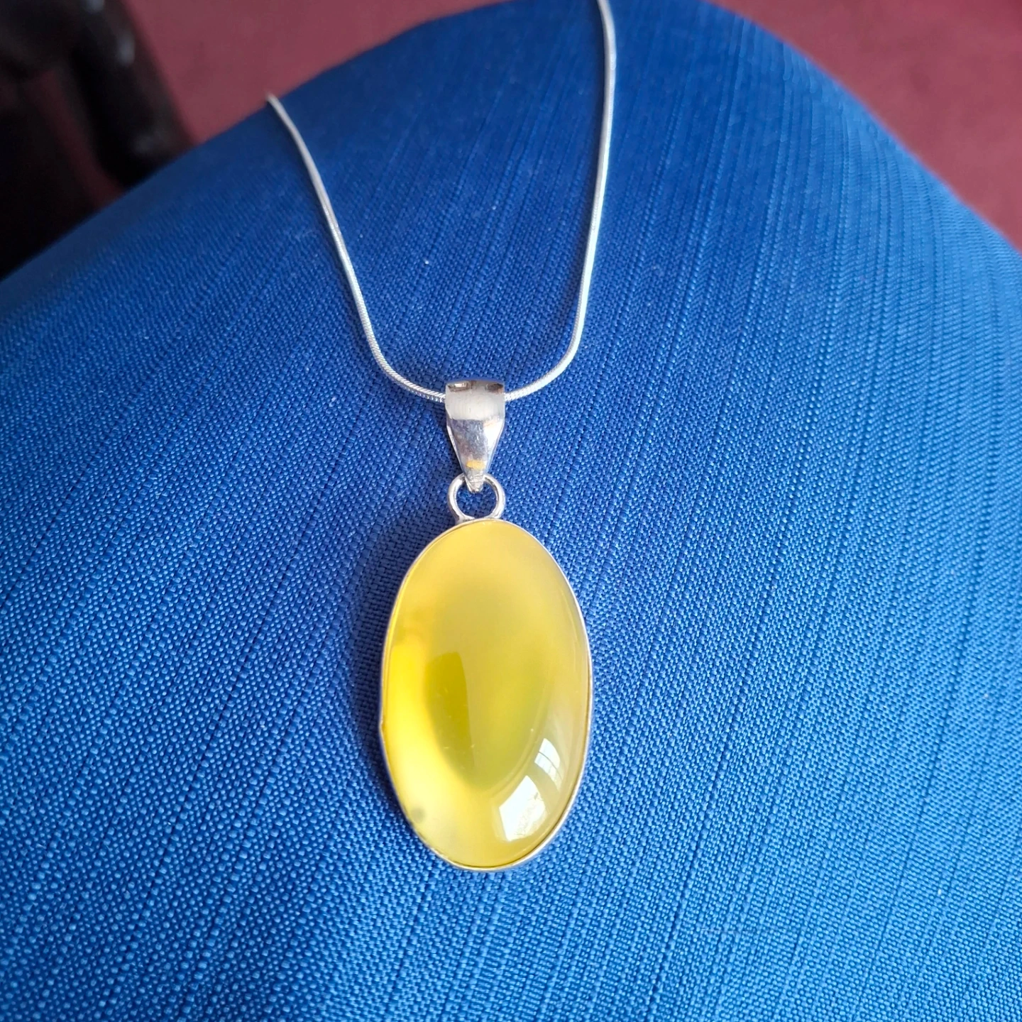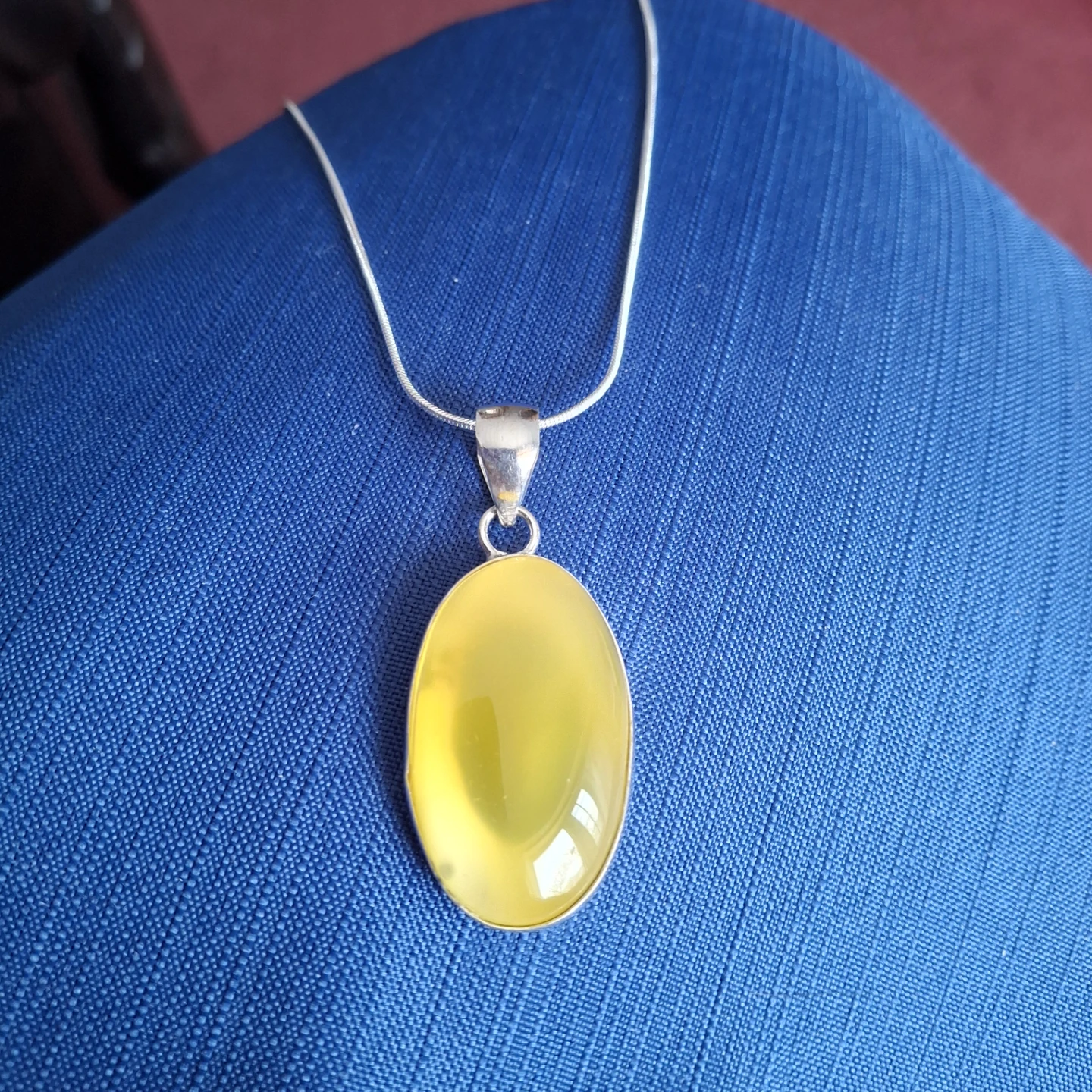 Here's a lovely sterling silver necklace with a beautiful yellow onyx gemstone. It would make a great addition to any outfit!