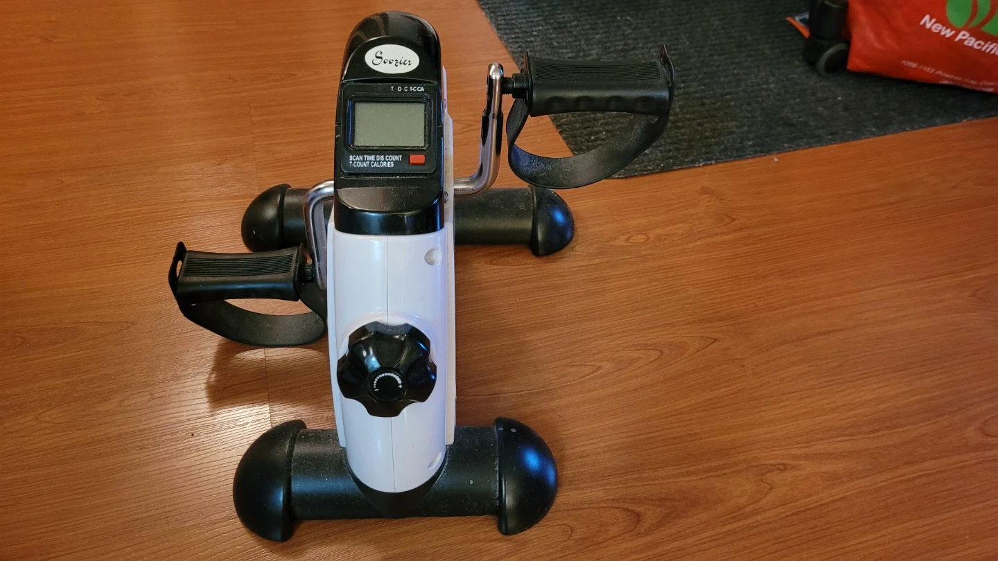 Selling a Soozier pedal exerciser in excellent condition! It's perfect for getting some exercise while sitting. Comes with the original box.