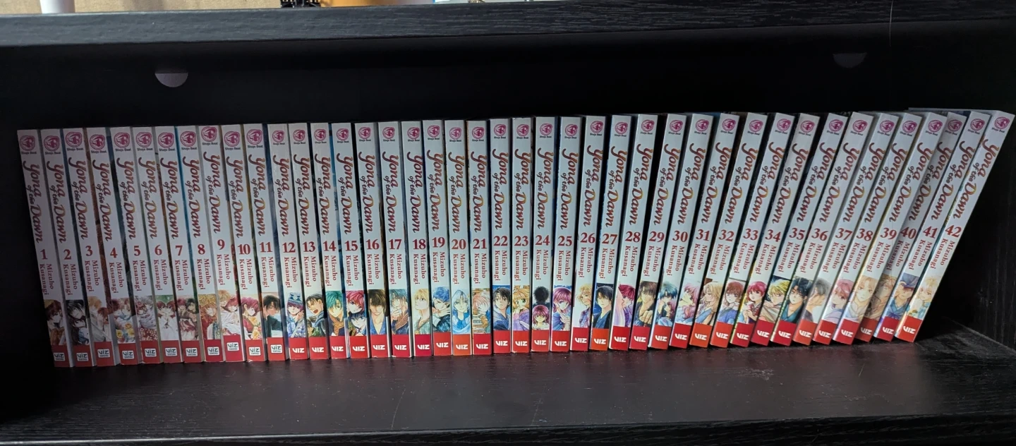 Yona of the Dawn manga, volumes 1-42 by Mizuho Kusanagi. Missing the last few volumes (currently at 45, possibly ends at 46) but trying to do a new year cleanup.