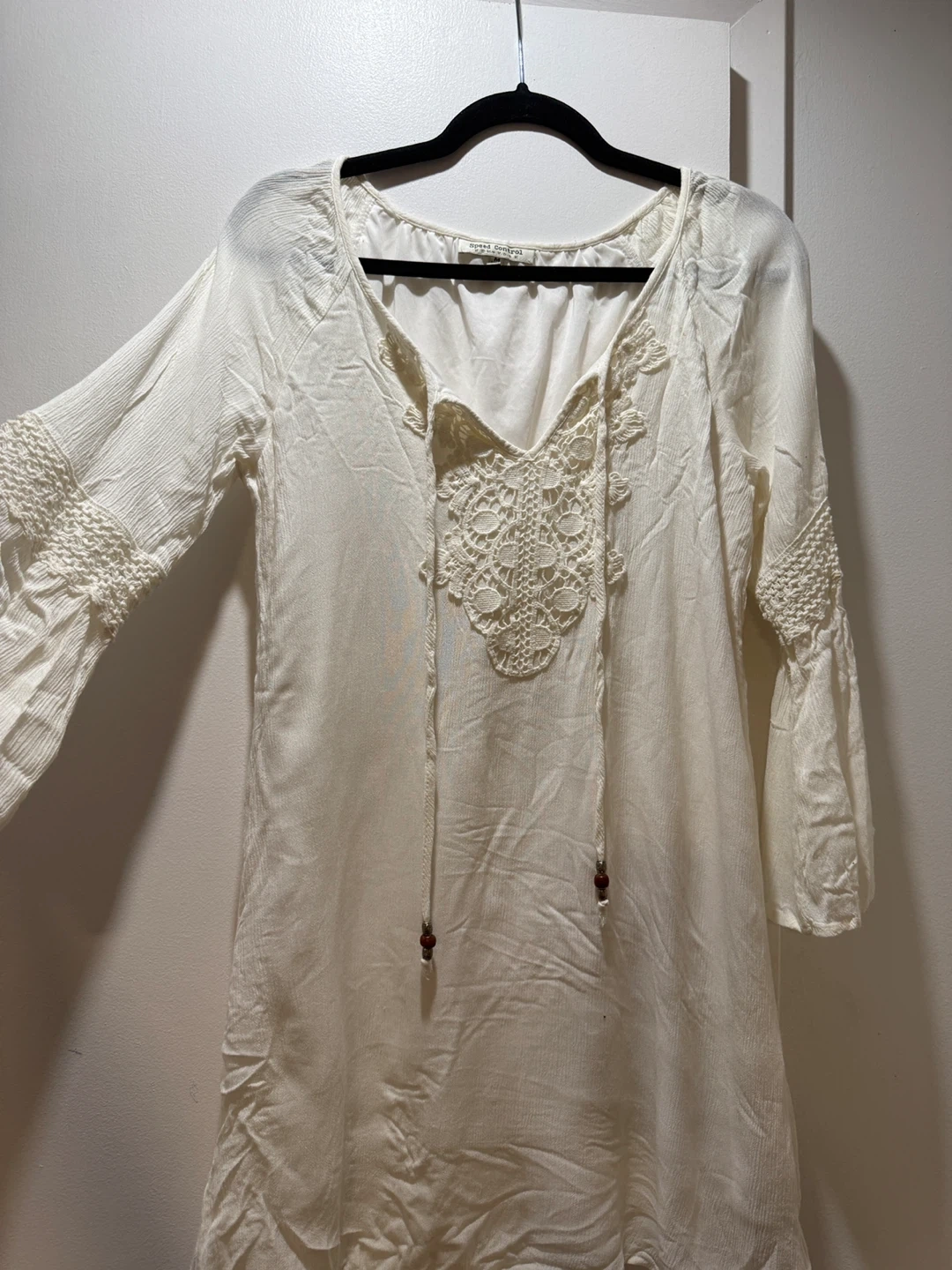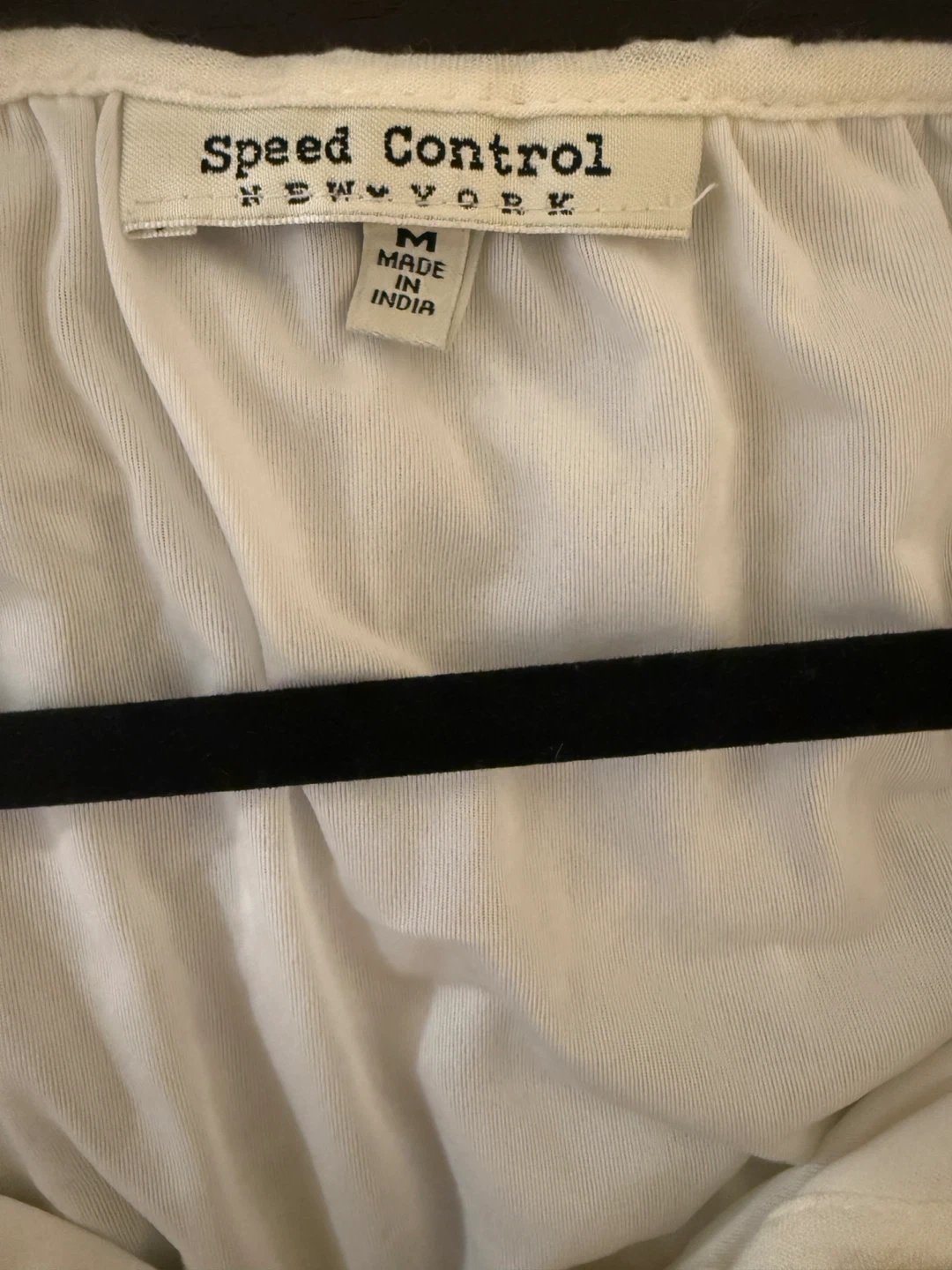 Selling a beautiful white dress from Speed Control New York in size M. It features a lovely lace detail and a comfortable fit. Perfect for a casual day out or a special occasion!