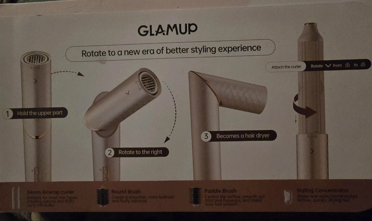 I'm selling a GlamUp Beauty Wand. It's a multi-styling tool for creating versatile hairstyles.