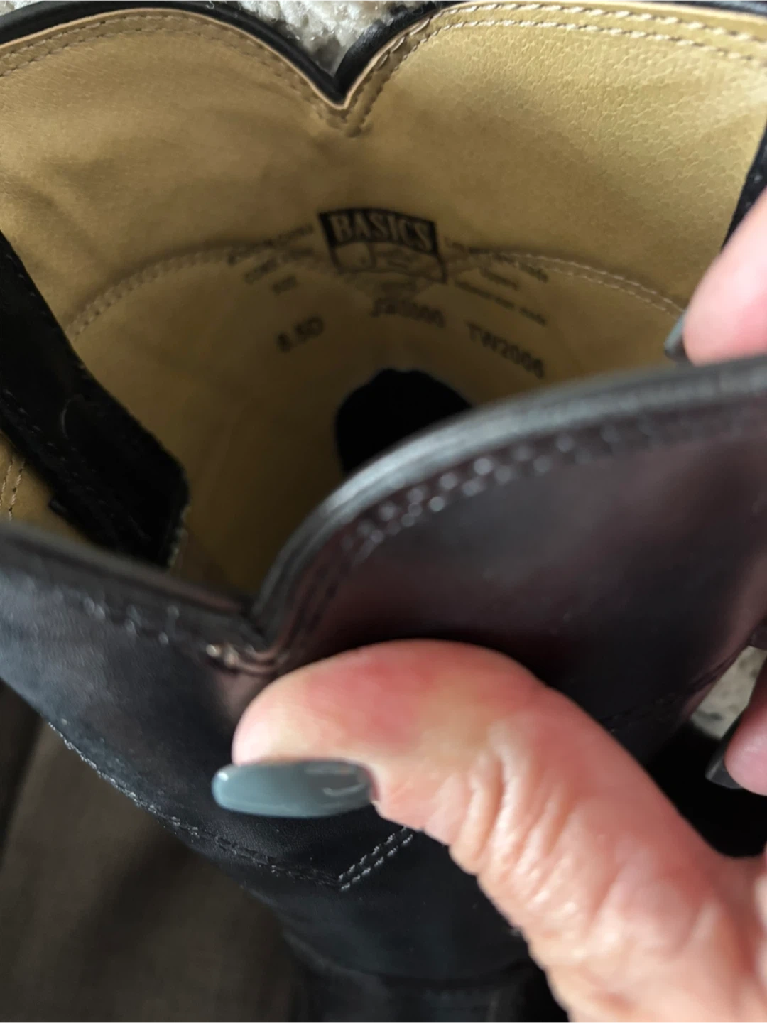 Selling a pair of Justin Basics black cowboy boots in size 8.5. These boots are in new condition and ready for a new owner! They feature a classic design and are perfect for everyday wear.
