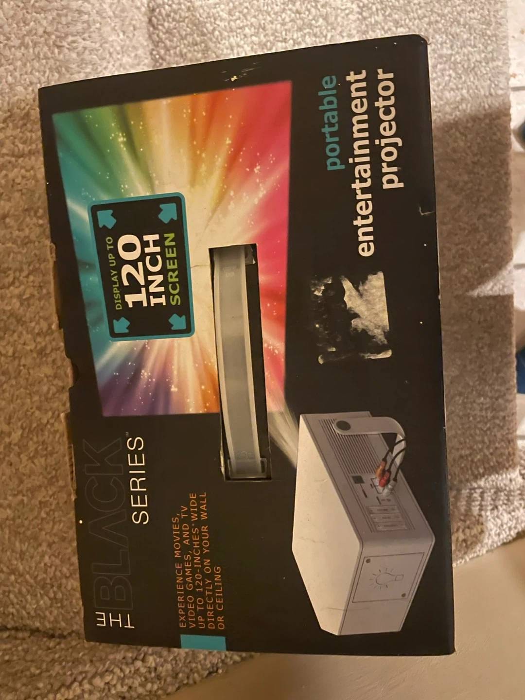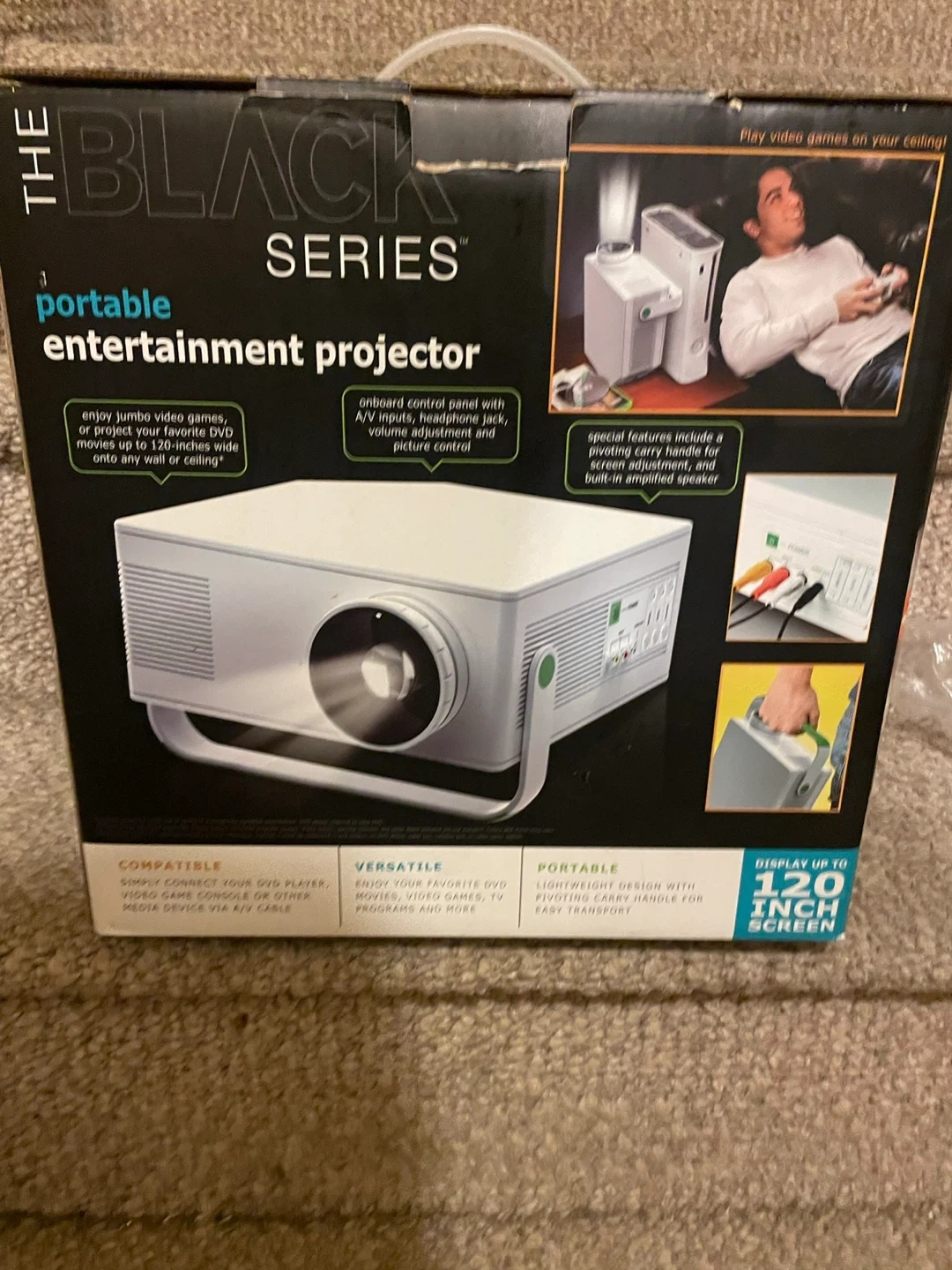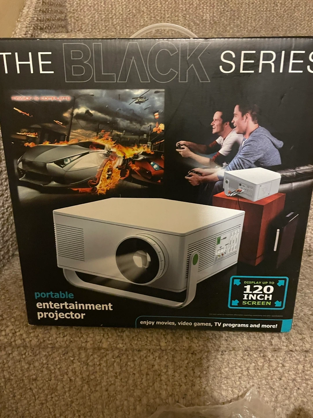 Selling The Black Series portable entertainment projector! It's great for enjoying movies, video games, and TV programs. It can display up to a 120-inch screen. It has a lightweight design with a convenient handle for easy transport