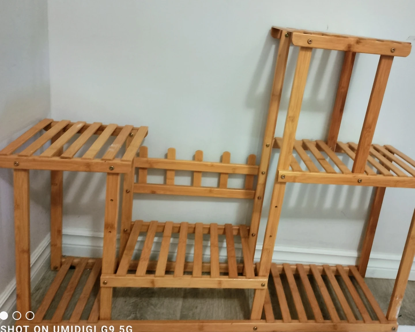 Selling a bamboo plant stand shelf. It's a great piece to display your plants and add a natural touch to your home decor. The stand has multiple tiers for displaying plants of different sizes. It's in good condition and ready for a new home!