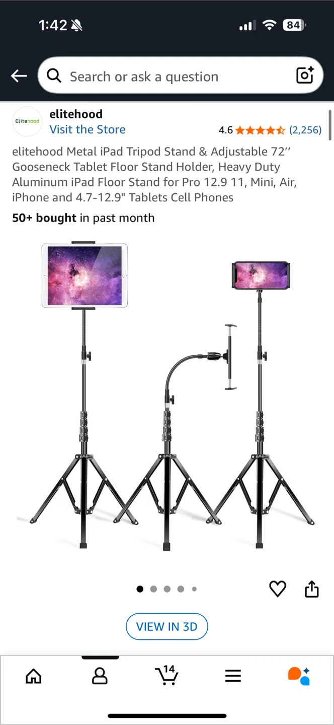Selling an Elitehood metal iPad tripod stand! It's adjustable up to 72" with a gooseneck tablet floor stand holder.