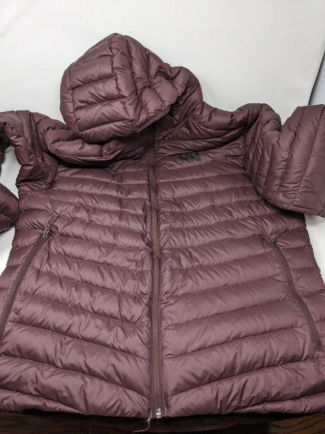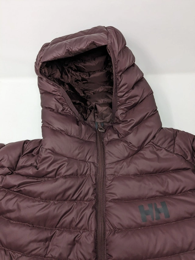 Preowned men's down jacket by Helly Hansen, no cuts or tears on the jacket. Model - Verglas Hooded Down Insulator. Color - 674 Bourbon. Size - XL. Price is firm. No Trades. Pick up only (St Clair West Station)