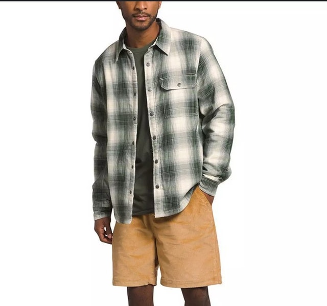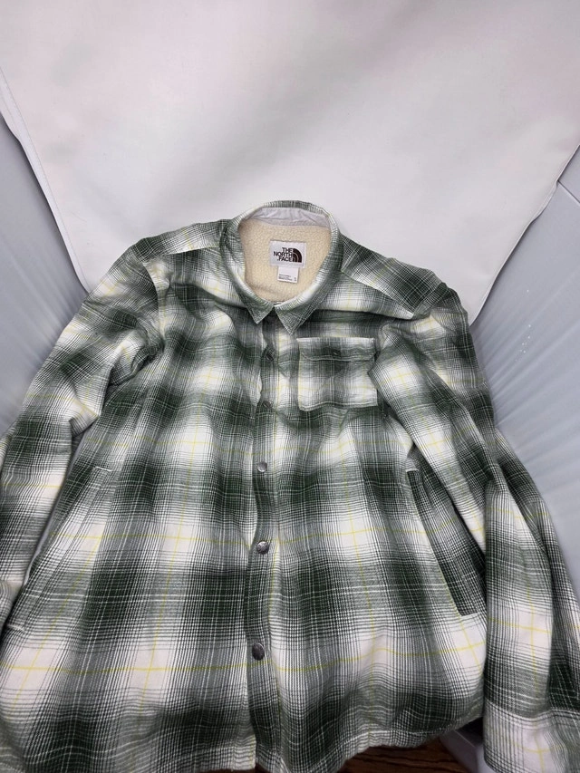 Selling a preowned Men's fleece lined plaid shirt jacket Model Campshire Color green and white Size XL Price is firm, No Trades Pick up only (St Clair West Station)