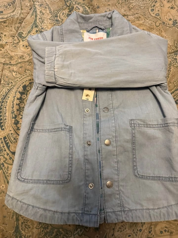 Buy & SellBrand New Joe Fresh Jean Jacket Size 5 $10.00Brand New Joe Fresh Jean Jacket Size 5 $10.00$10I am selling a Brand Joe Fresh Jean Jacket for $10.00. It’s brand new and retails for 29.99 not including Taxes. Size 5ConditionNewAge3-5 yearsWHERE TO MEETCheck LocationView MapSELLERverifiedSheldonDon Valley Village1024 reviews0 chats·1 favorites·8 viewsSEND CHAT TO SELLERHi Sheldon! I’m interested in your listing.Hi Sheldon! I’m interested in your listing.Get the Karrot app to chatSign In to chat