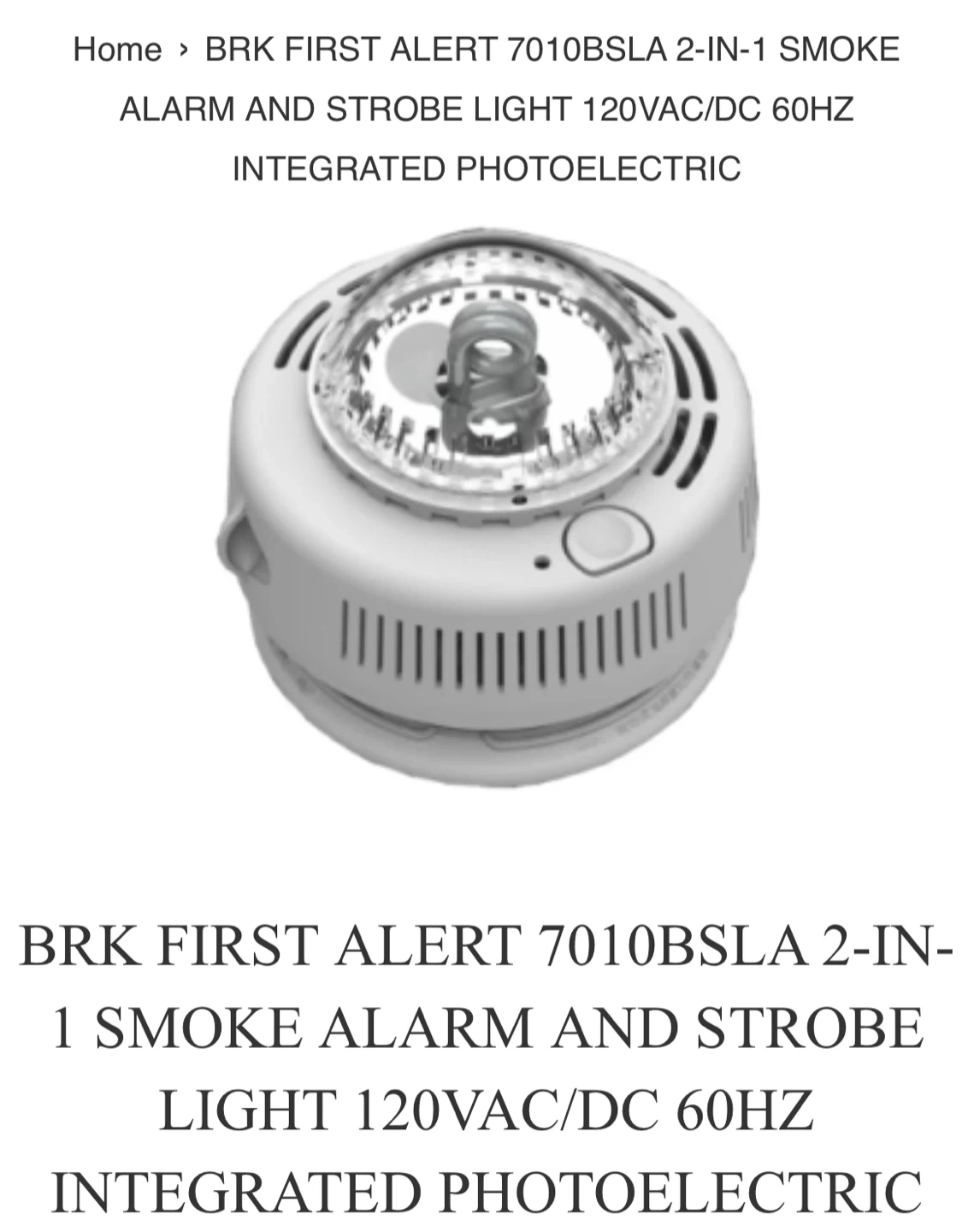 Selling a brand new BRK 7010BSLA Smoke & Strobe Combo! This is a 2-in-1 smoke alarm and strobe light, perfect for ensuring safety. It features an integrated smoke alarm and strobe light, along with a smart strobe with 177 candela xenon light. It also has an AAA battery backup for the smoke alarm. Comes in the original box!
