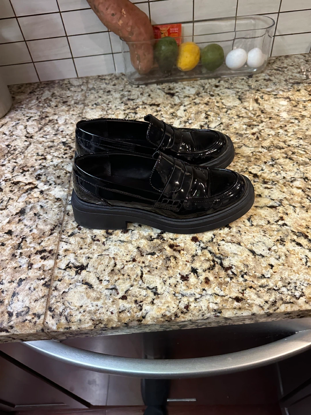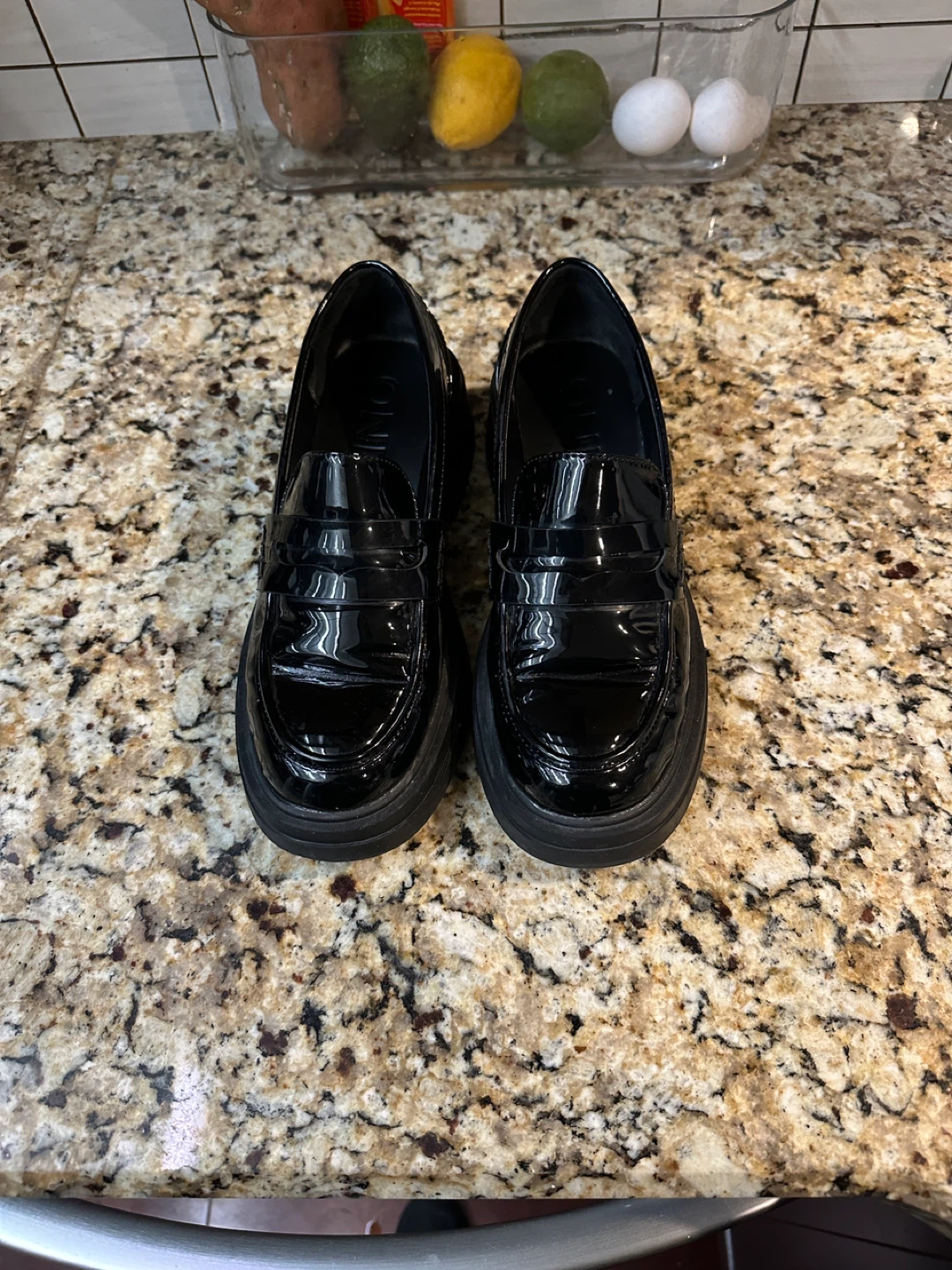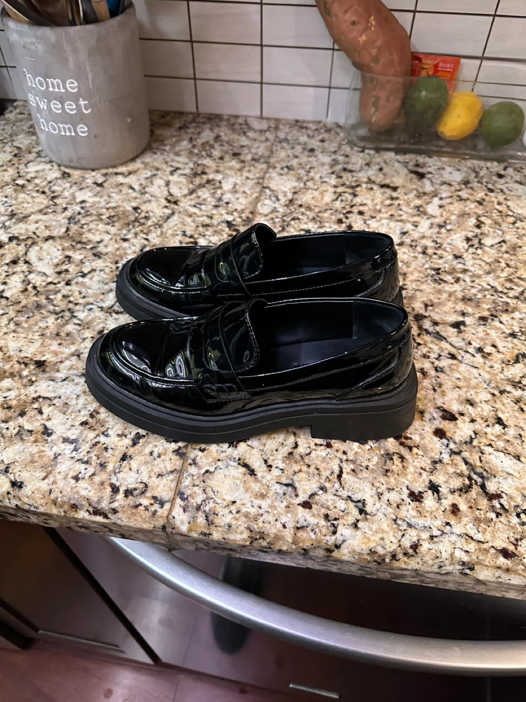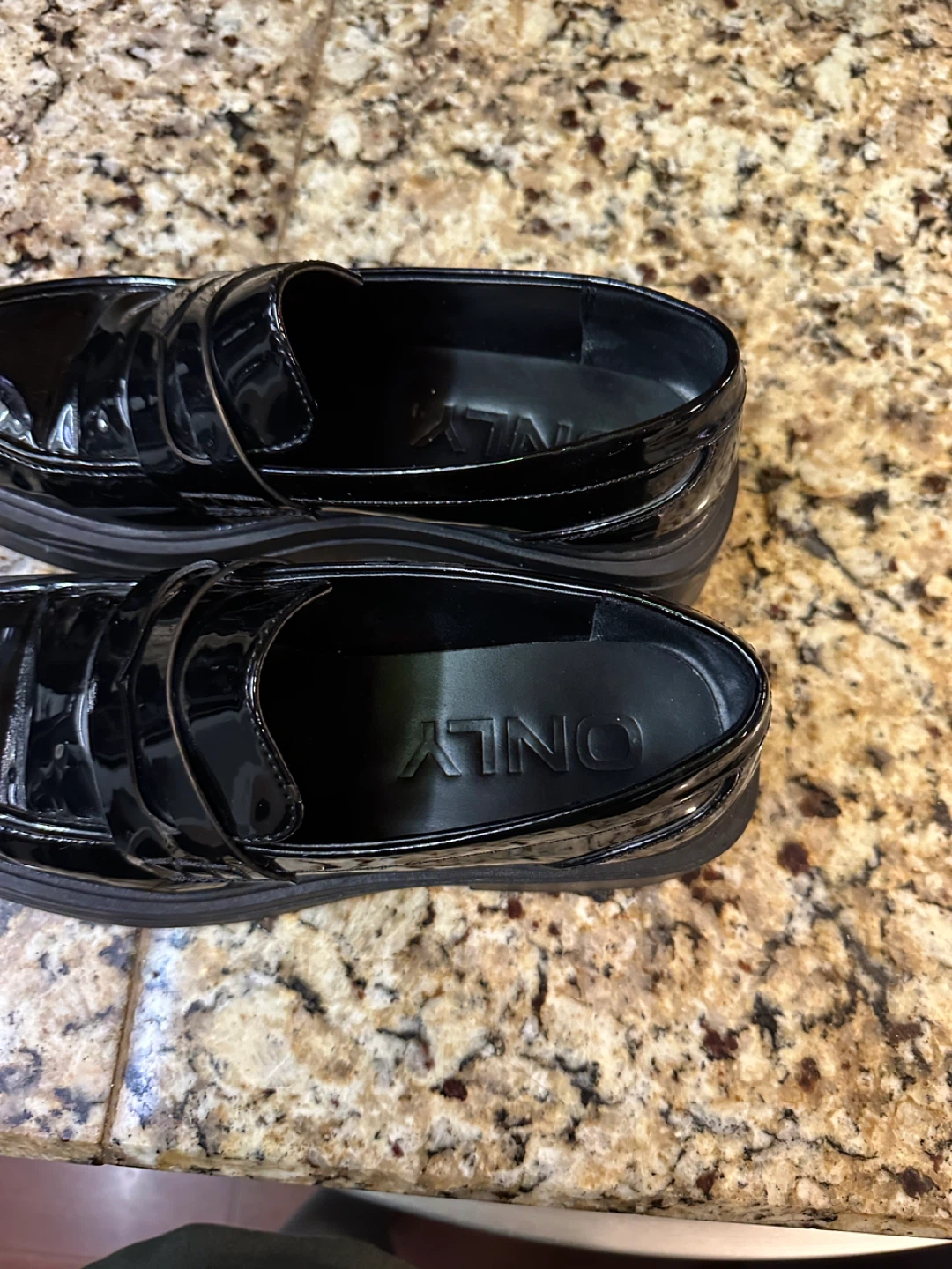 Selling a pair of ONLY black patent leather loafers. They are in great condition and would be a great addition to your wardrobe!