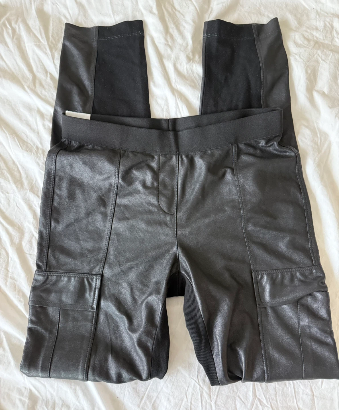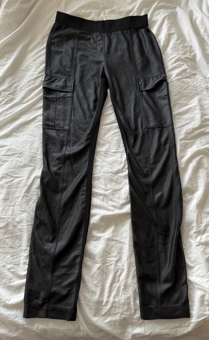 BCBGMAXAZRIA Black Faux Leather Cargo Pants - Size S