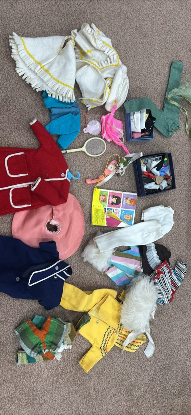 Selling a collection of vintage Barbie doll clothes. There are various outfits and accessories included, perfect for collectors or anyone who loves vintage Barbie items! Make me an offer