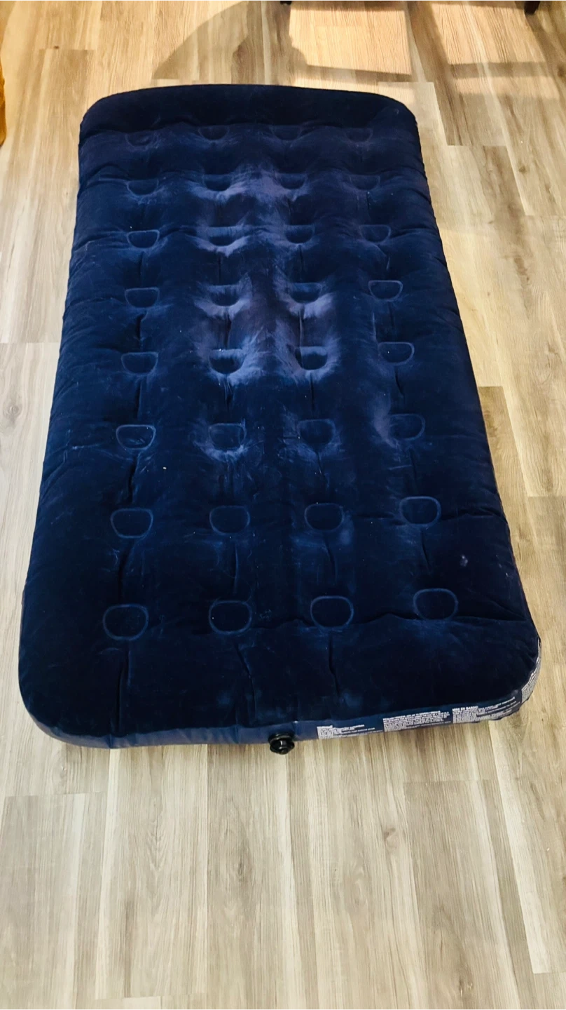 Selling an Intex inflatable air mattress, perfect for guests or camping! It comes with a hand pump to make inflation easy. Great for indoor and outdoor use