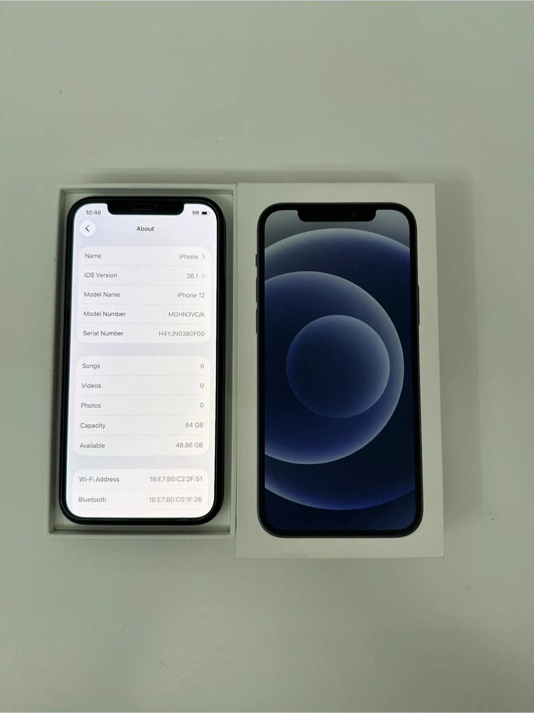 Apple iPhone 12 64GB Black Dual Sim Unlocked 87% Battery