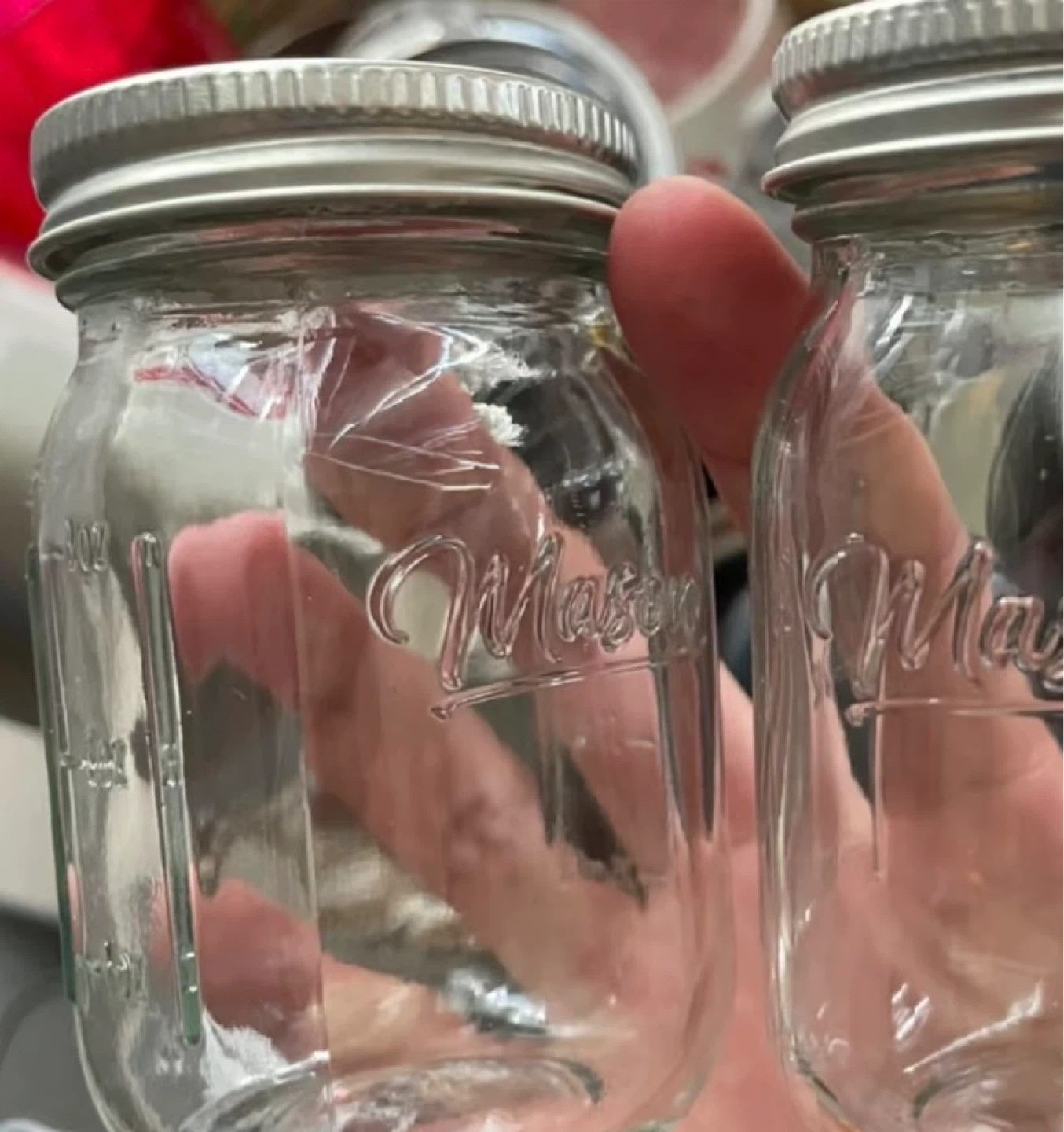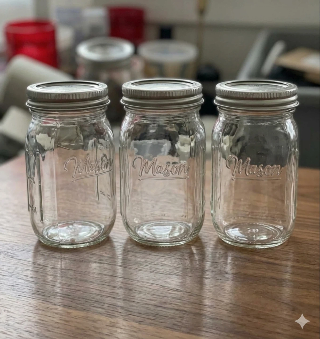 Selling a set of two clear Mason jars with silver lids. They're in great shape and ready for your next canning project or creative storage solution!