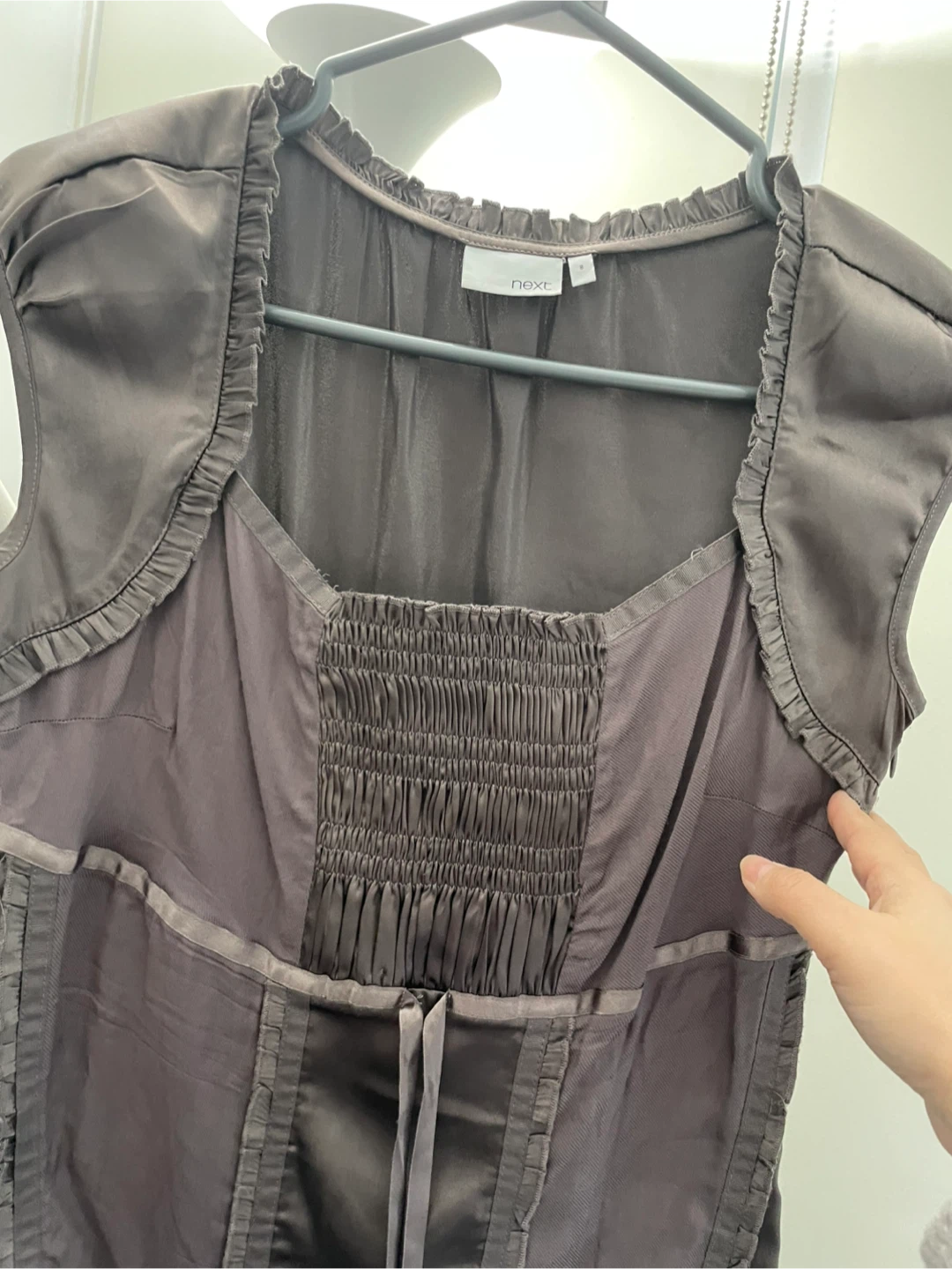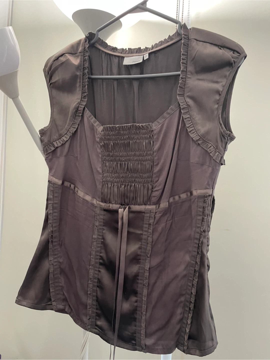 Selling a cute brown blouse from Next in size 8. It's in great condition and would be a lovely addition to your wardrobe!