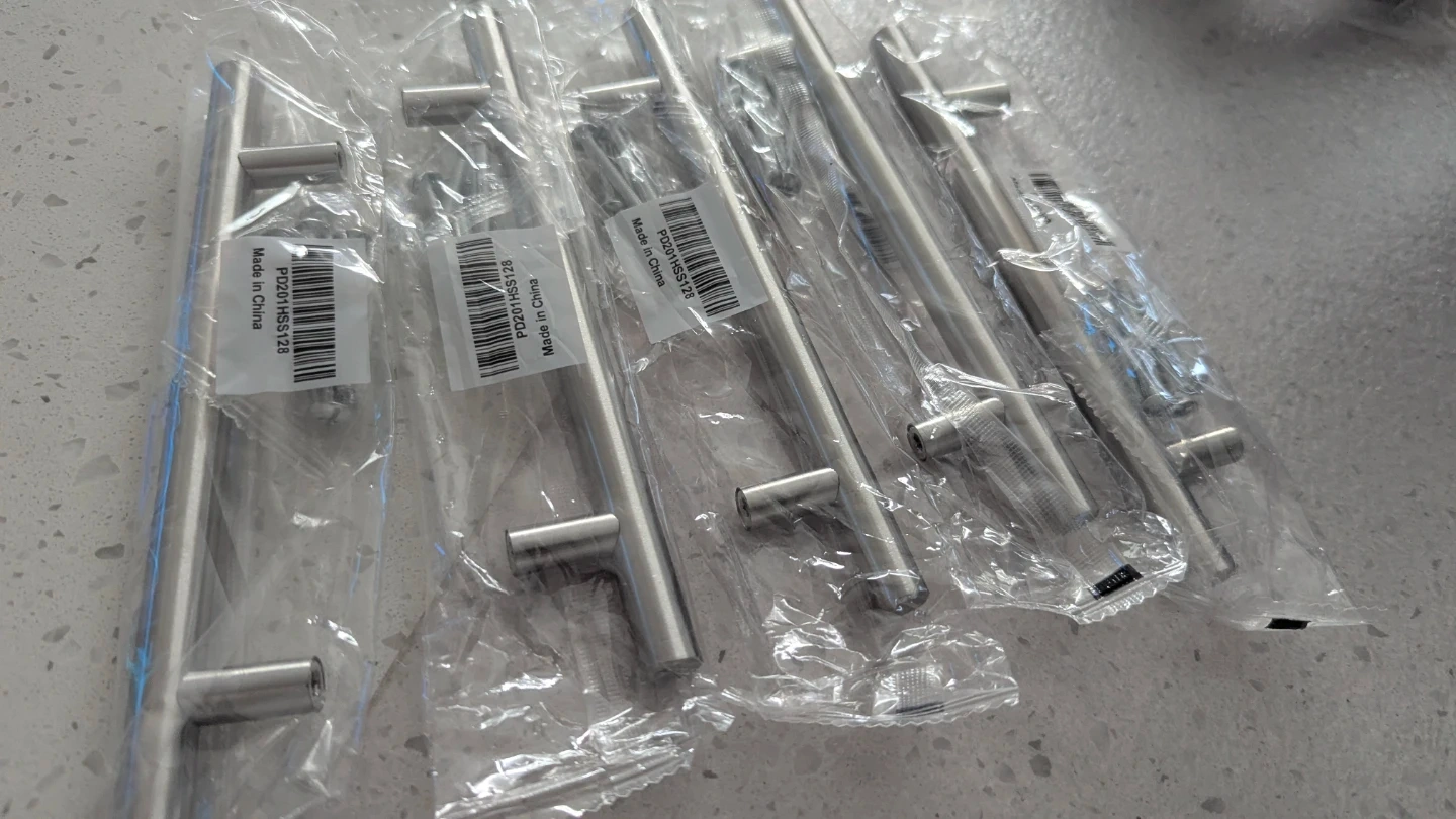 These cabinet or drawer pull handles are still in their original packaging! They're a sleek and modern way to update your kitchen or bathroom cabinets. They come with all the necessary hardware for easy installation