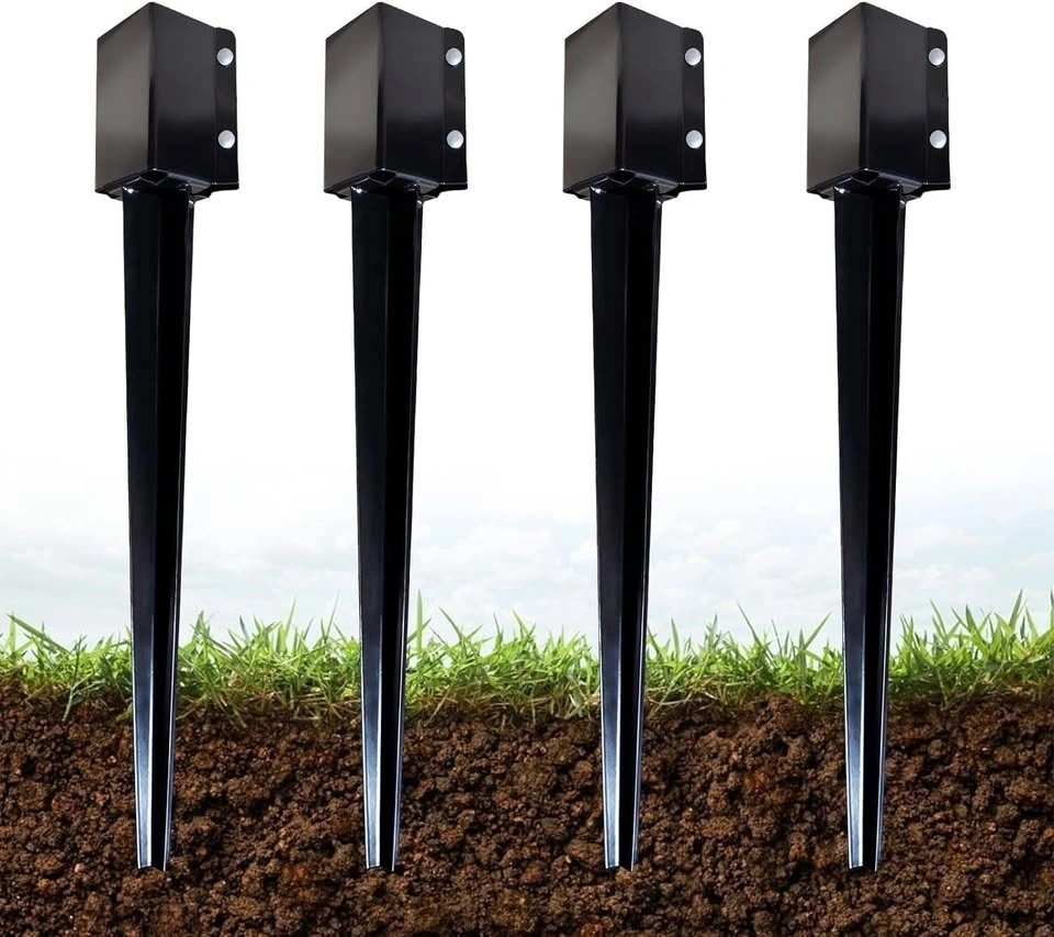 Our fence post anchor features a tough rust-resistant coating that ensures long-lasting performance, even in harsh outdoor conditions. Our post bracket is designed for easy installation without the need for digging. Our fence post anchor can fit a standard 4x4 inch post with a inner size of 3.5x3.5 inches. Additionally, screws on one side allow the opening in the post holder to be large enough to insert your 4x4 and then tighten it securely in place. The fence post anchor provides excellent stability and support for your fence, mailbox, sign post, or other outdoor structure. The fence anchor ensures your post won't wobble or become unsteady over time. Our fence post anchor can be used for a wide range of applications, including mailbox posts, decorative flag poles, solar devices, banners, and more. The ground post supports provides versatile support for all your outdoor needs.