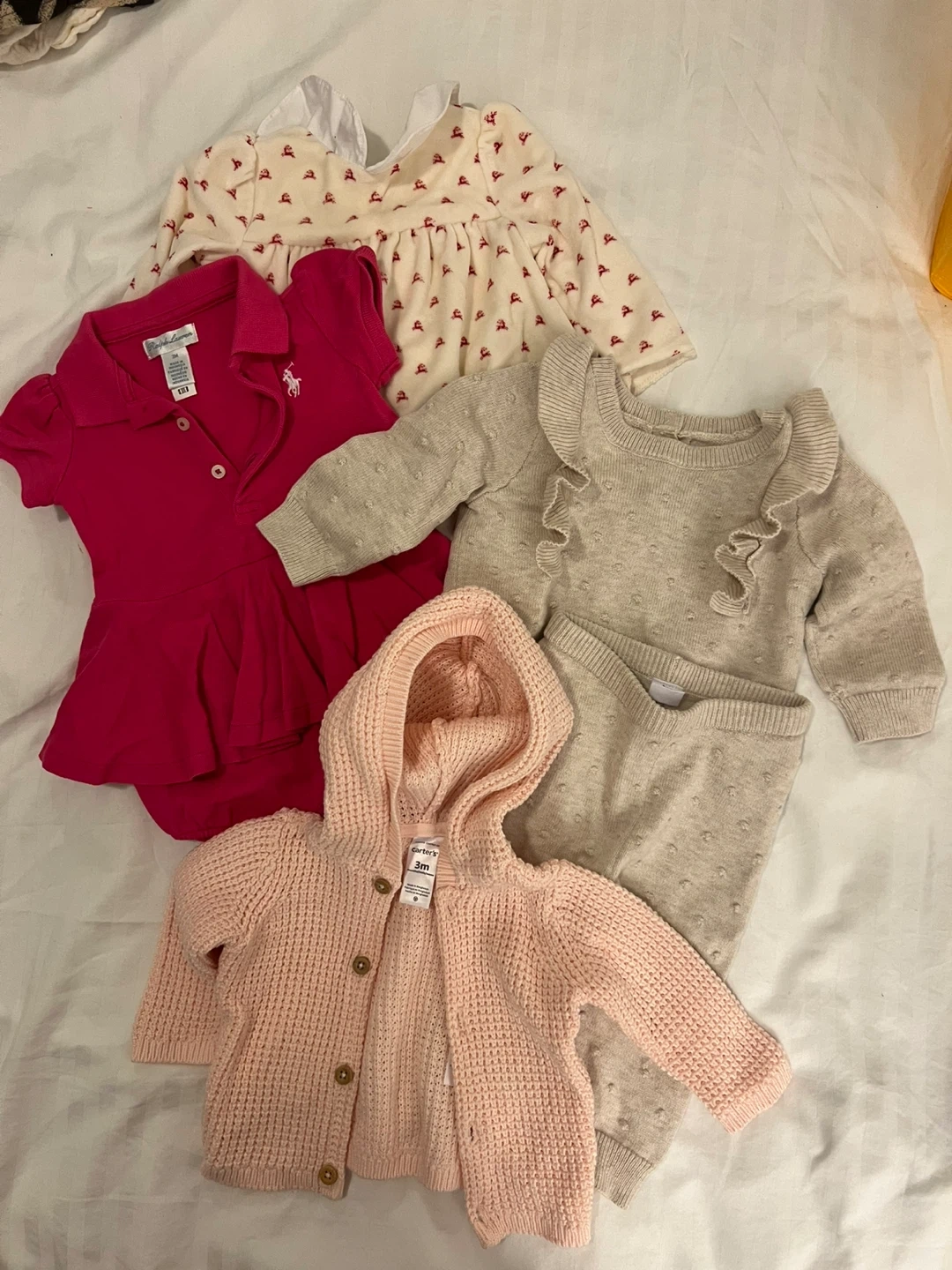 Selling a bundle of adorable baby clothes! Includes items from Ralph Lauren and Carter's, all in size 3M. Perfect for your little one!