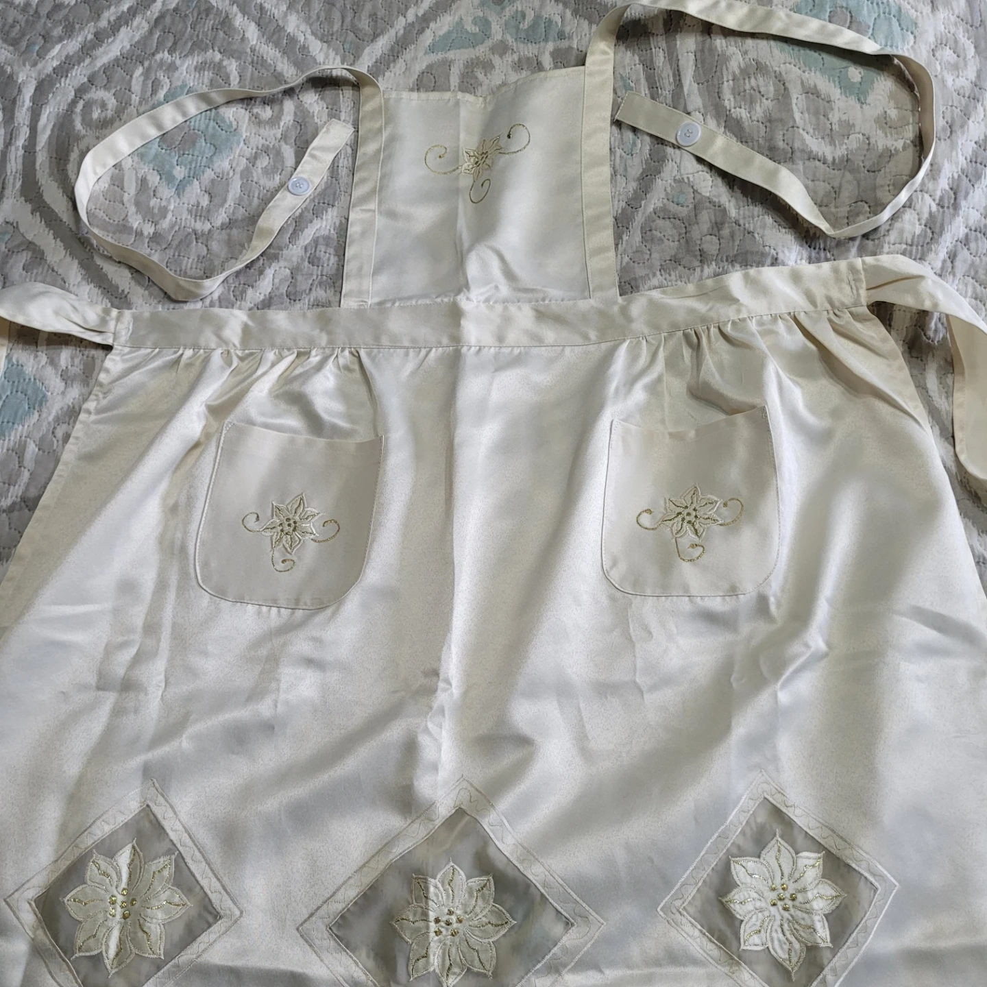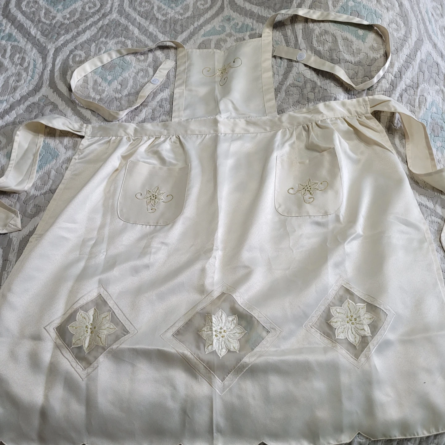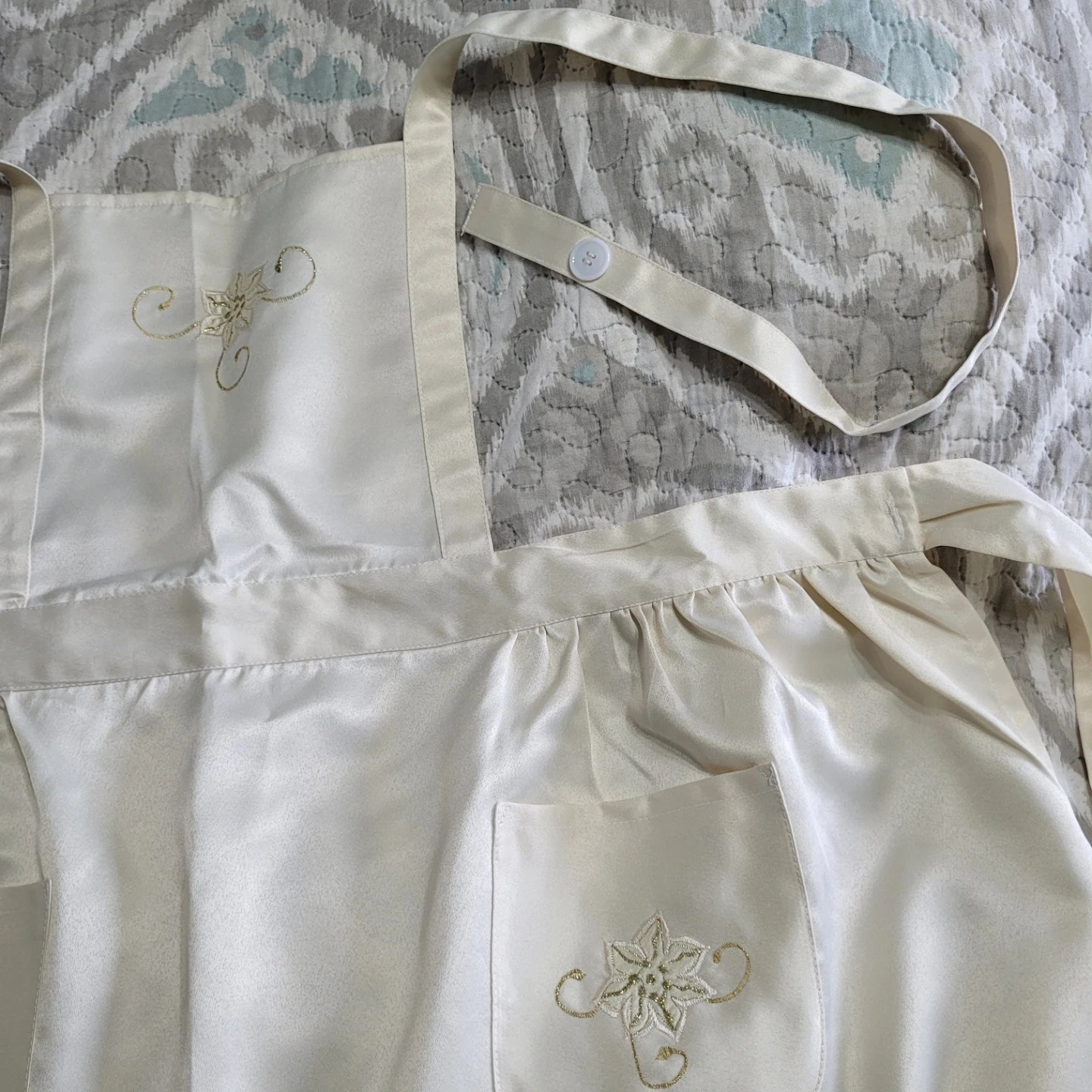 Beautiful Silky Apron - Waist up to 70" - Adult One Size - Brand New Condition- Beige & Golds - please see all pictures