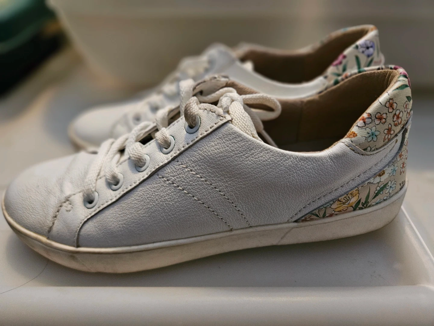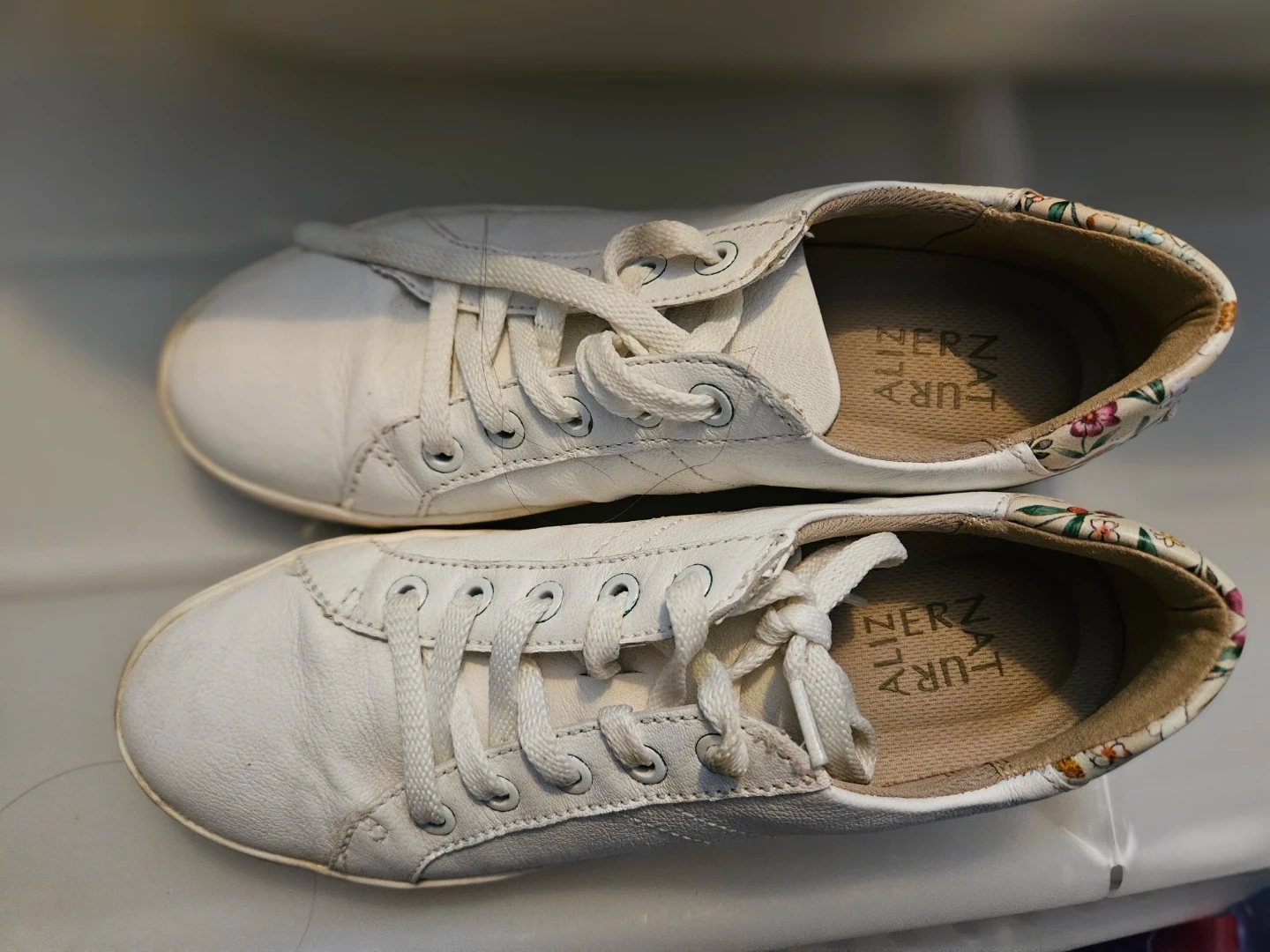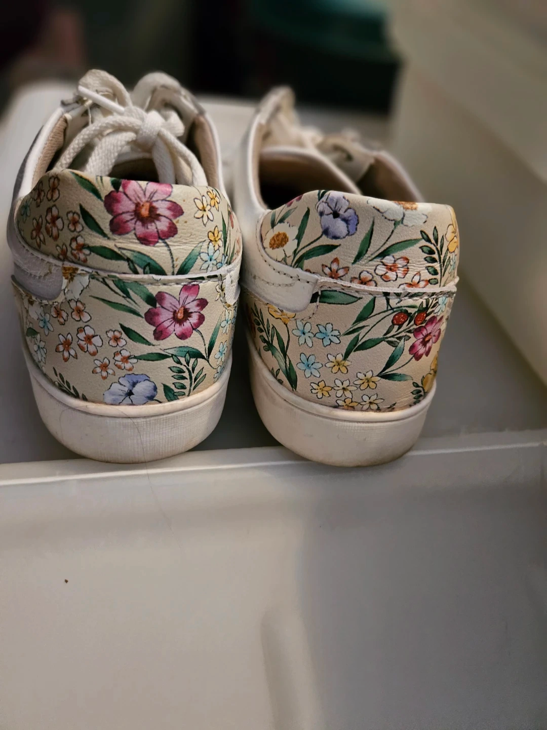 Cute Alizé Nat sneakers with a floral pattern on the heel! They are a size 8 but would fit 7.5-8 and are in good used condition. Perfect for adding a touch of spring to your outfit!