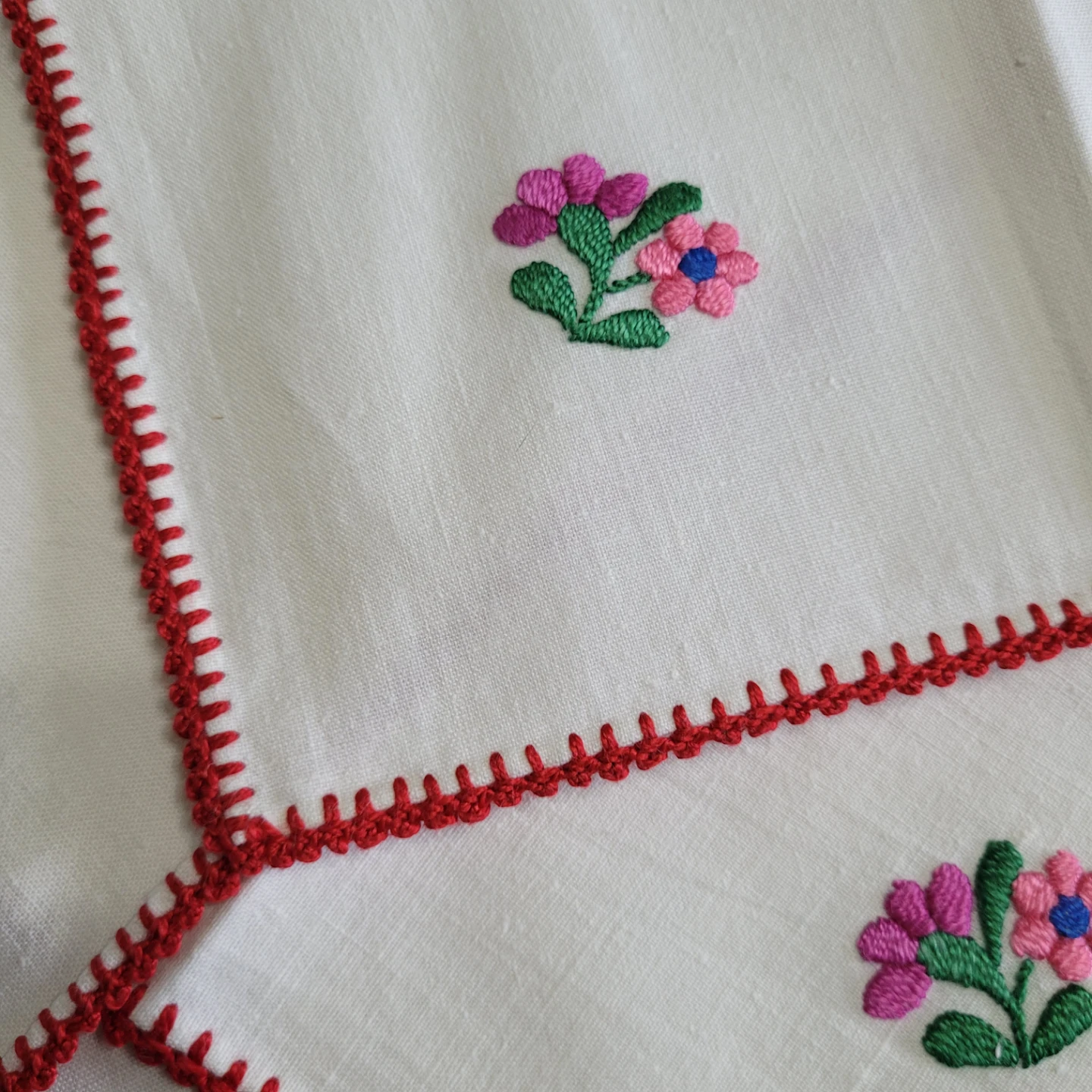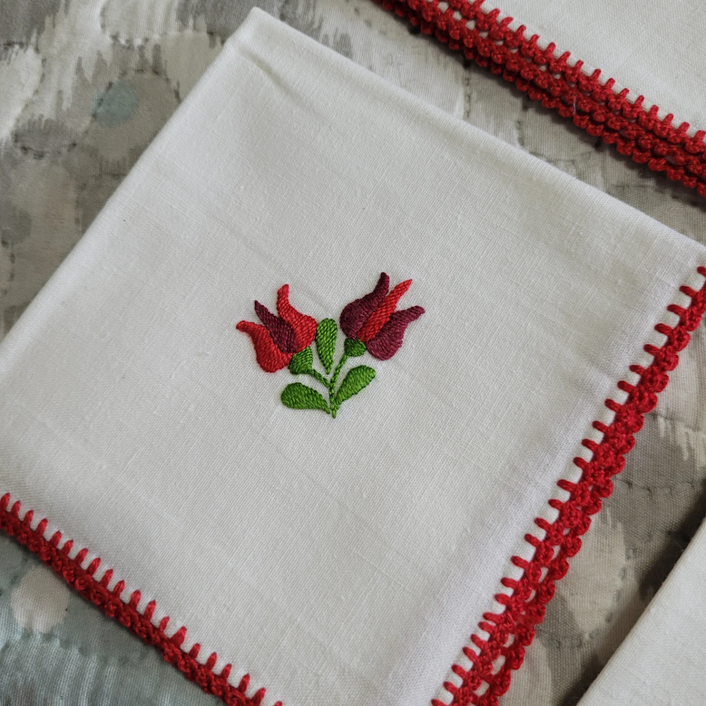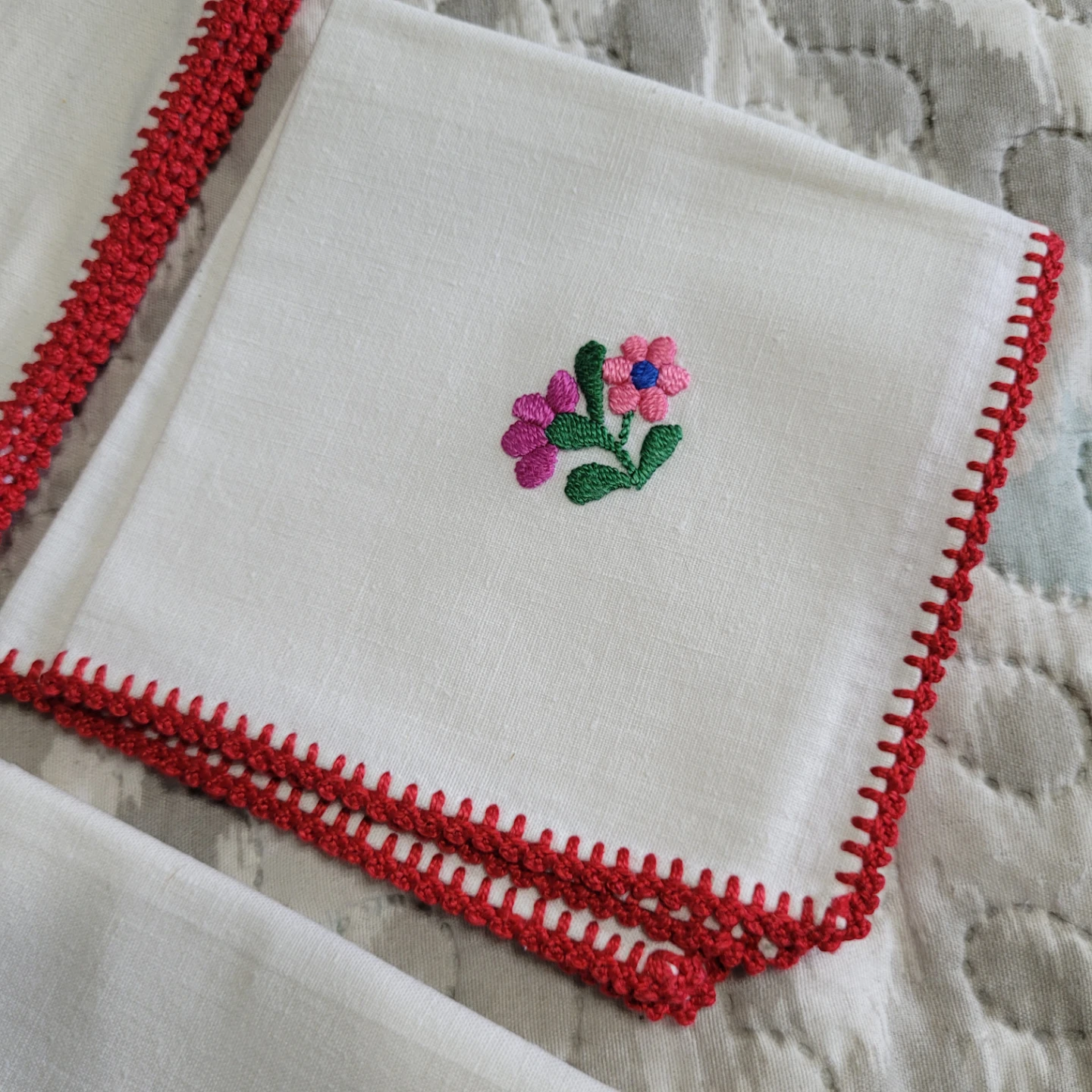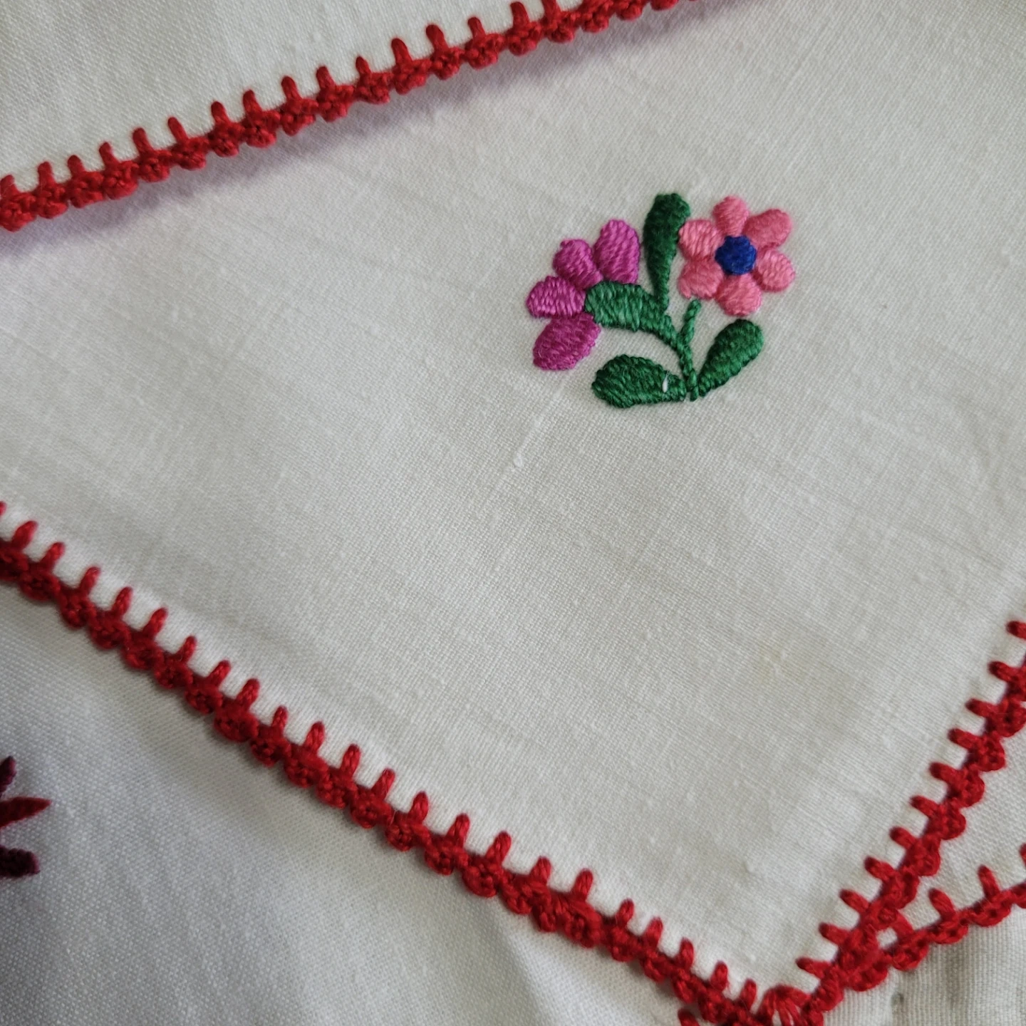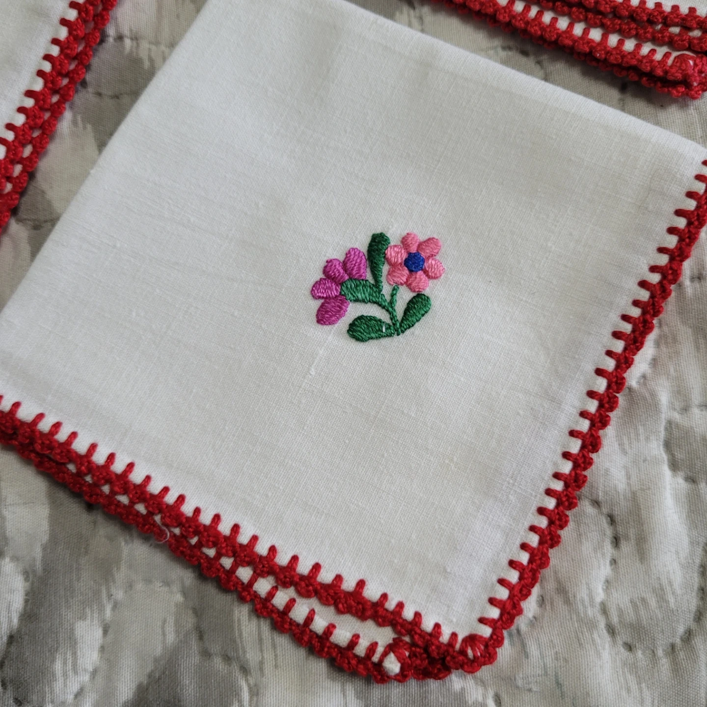 Beautiful Vintage Set of 4 Floral Linen Napkins Embroidered