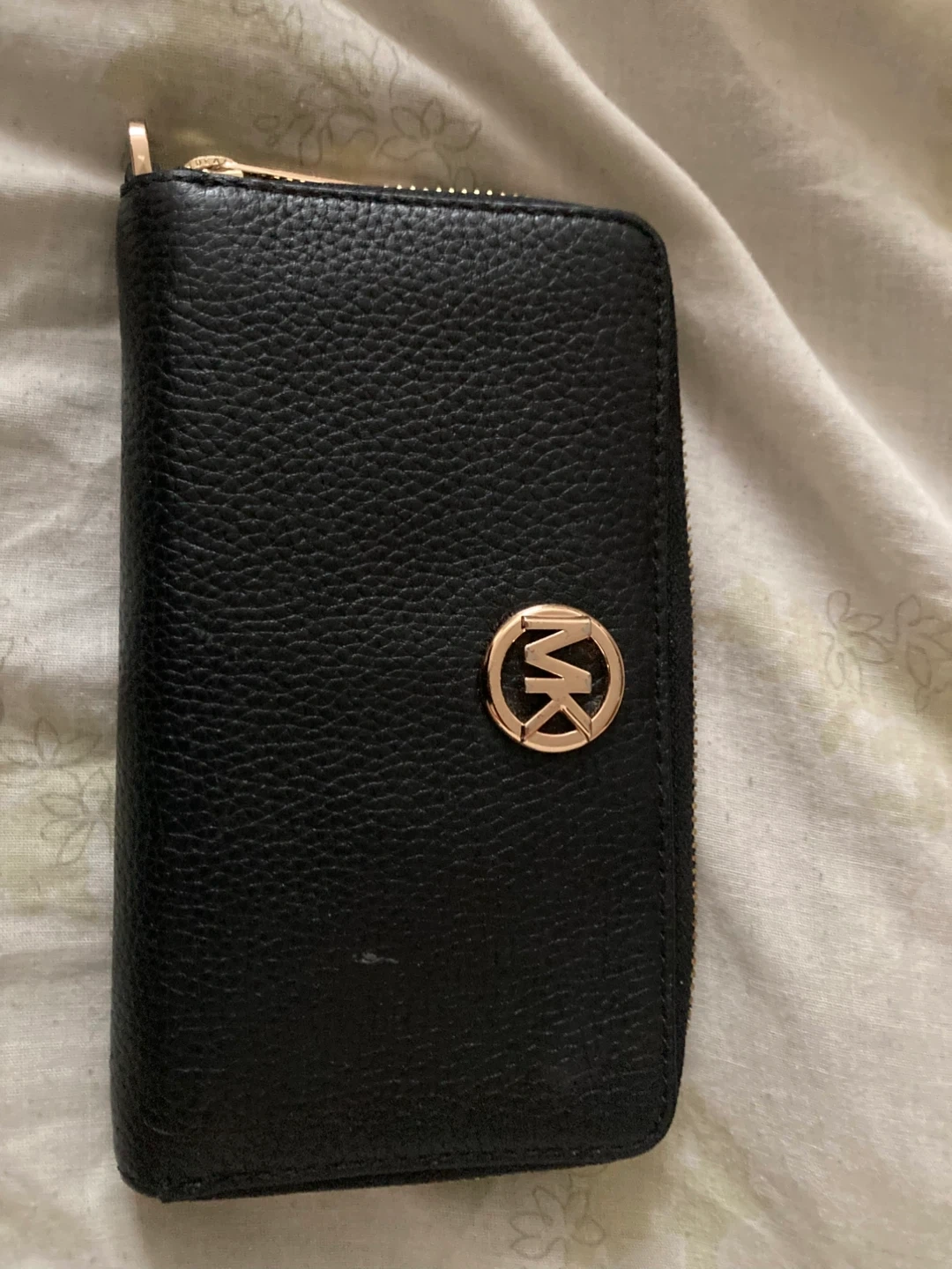 Selling a black Michael Kors wallet! It has a zip around closure and the classic MK logo on the front. It's in great condition and perfect for everyday use
