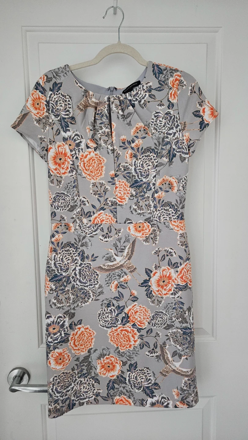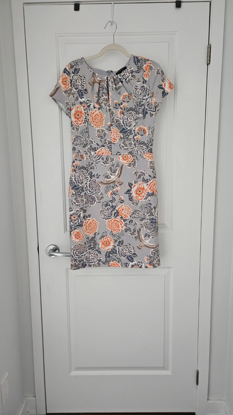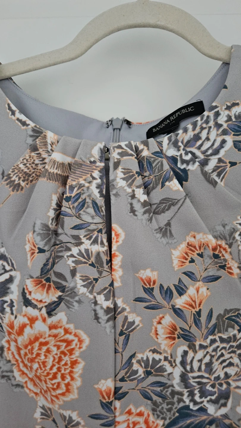 Virtually brand new Banana Republic dress in size 6 Medium. Has a beautiful floral pattern with orange and grey tones. Perfect for a casual or work occasion!