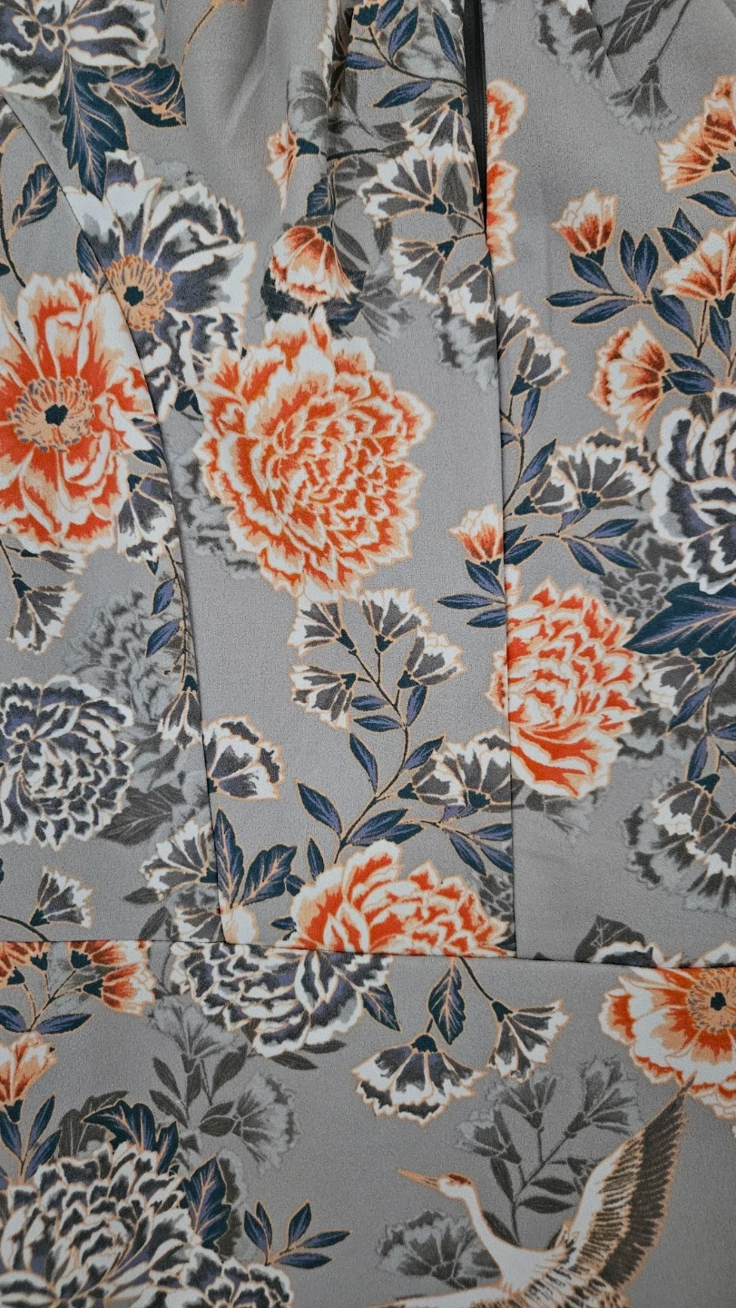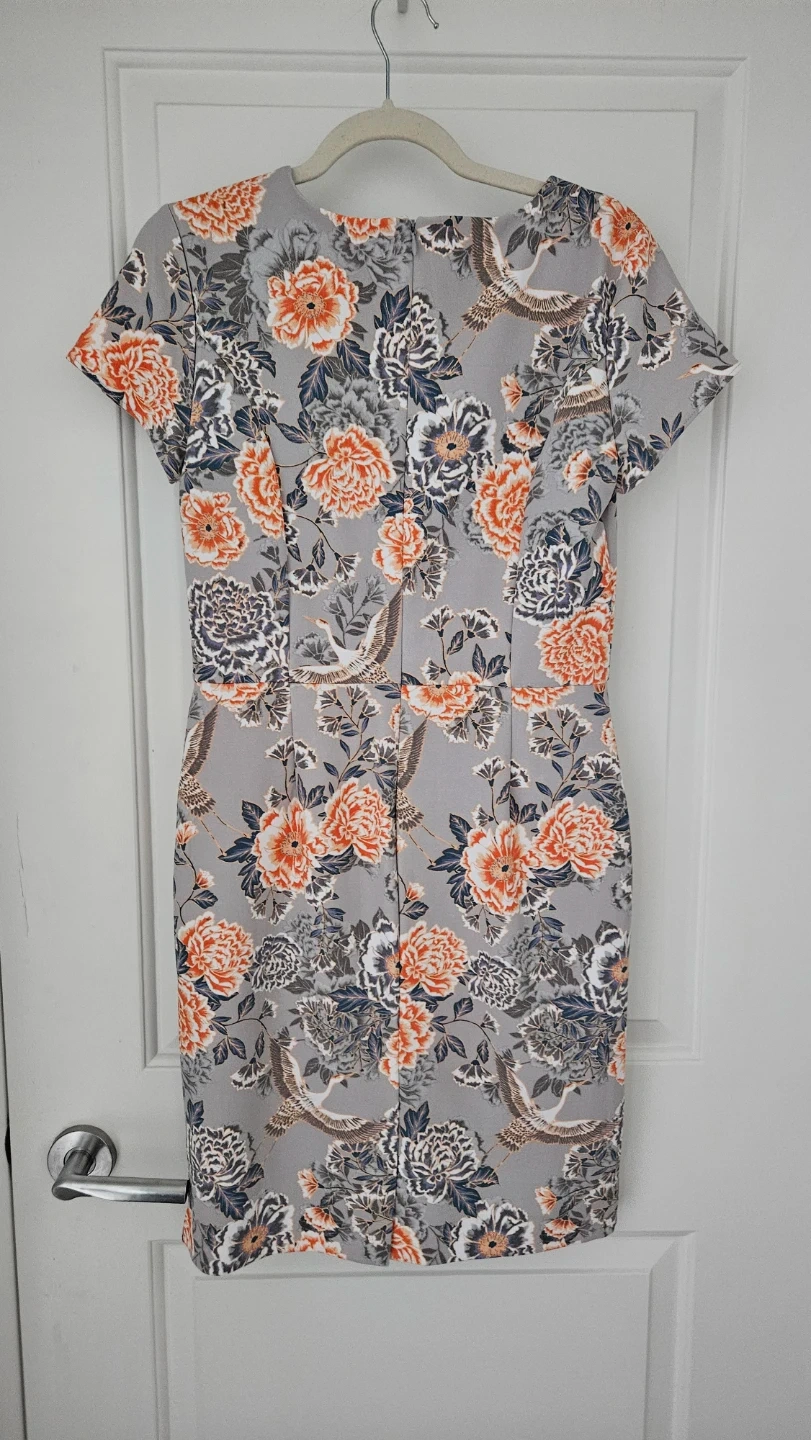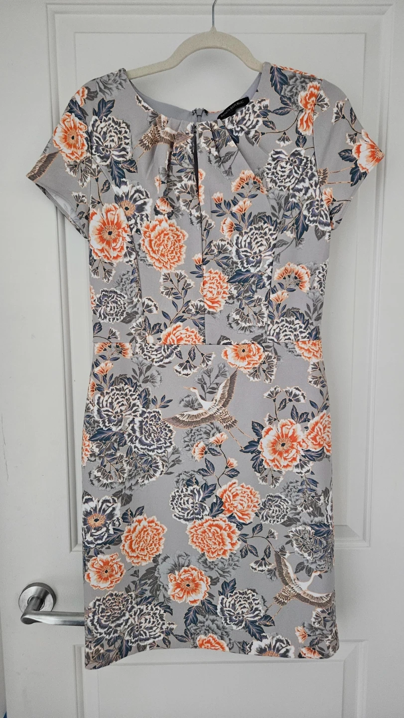 Virtually brand new Banana Republic dress in size 6 Medium. Has a beautiful floral pattern with orange and grey tones. Perfect for a casual or work occasion!