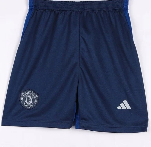 The Manchester United 24/25 Full Set Size-XL is a blue adidas jersey made of polyester material. This short sleeve shirt is designed in regular size L and is perfect for fans of the team looking to show their support. The set includes the jersey and possibly additional items such as shorts or socks. It is ideal for soccer enthusiasts who want to represent their favorite team on and off the field.