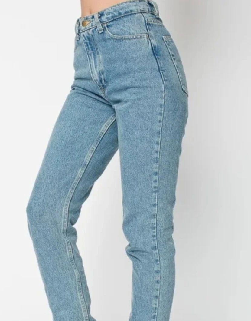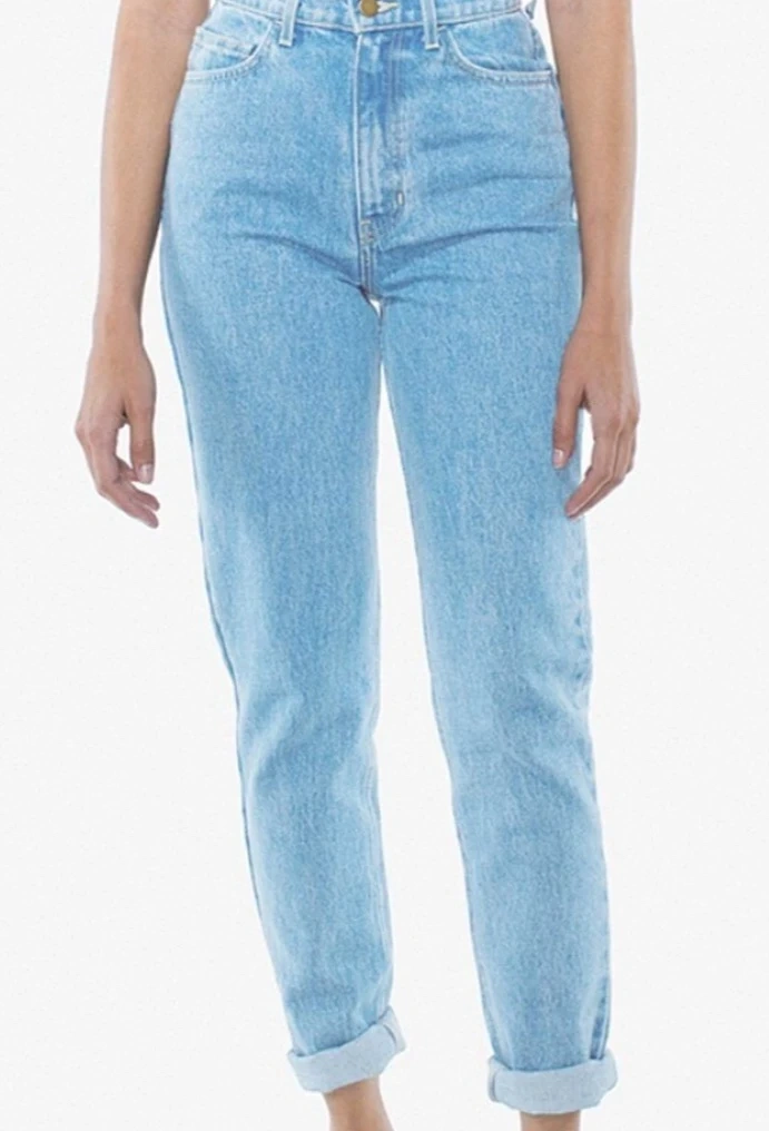 These are a pair of American Apparel high-waisted jeans in a light blue wash. They're in new condition and ready for a new owner to show them the love they deserve! Perfect for a casual, everyday look & can totally be dressed up.