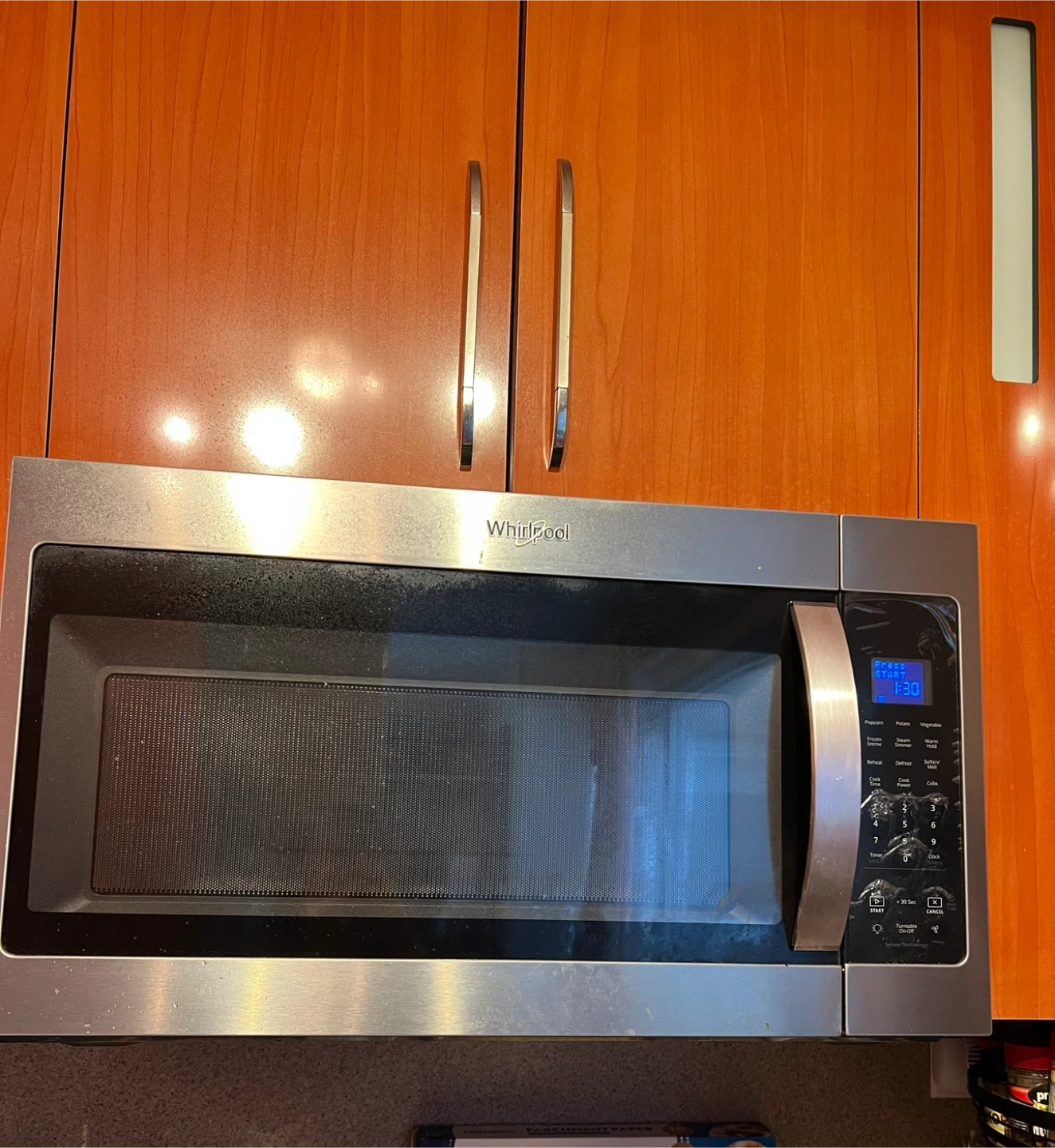 Selling a Whirlpool microwave in stainless steel. It's in good working condition and ready for a new home! It will fit perfectly in your kitchen.
