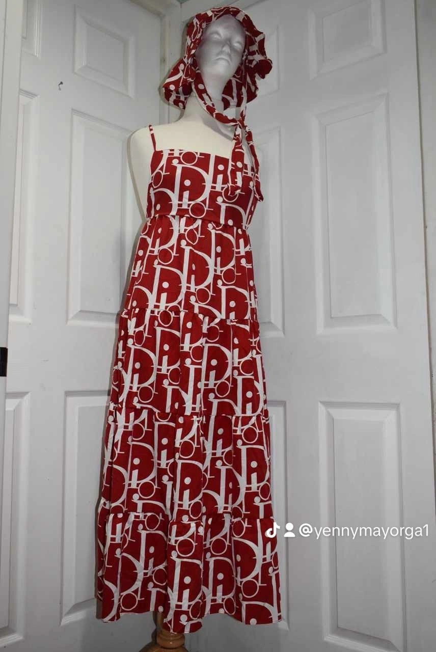 Long dress, with bolero, fresh fabric and adjustable hat uncovered at the back and straps, inspired by D. One size, fits all. Color: Multicolor.