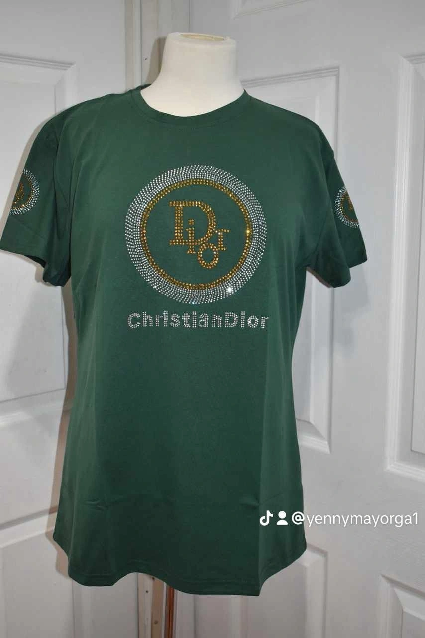 XL Women's T- shirt inspired by D with rhinestones 4 colors. Please specify the color in a message: burgundy, black, white, green, thank you.