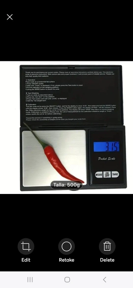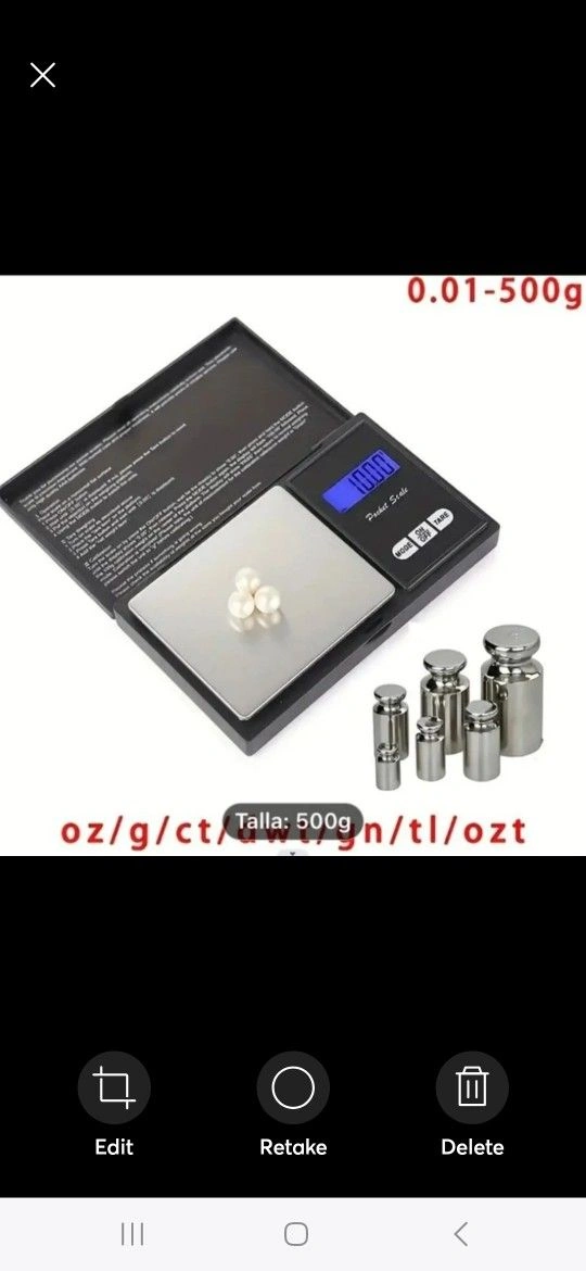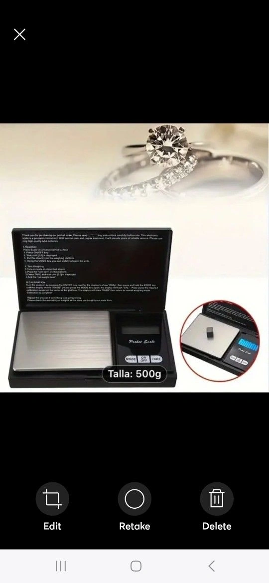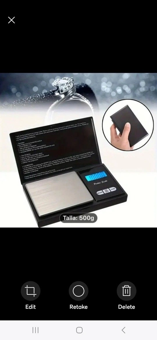 This digital pocket scale is perfect for measuring small items, including jewelry. With a capacity of 500g and accuracy of 0.1g, it's easy to get precise measurements on the go. The scale is battery operated and comes in a sleek black color made of durable plastic material.