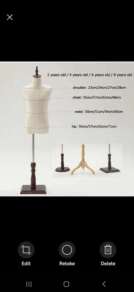 Our white Pinnable child dress form includes a Fairmont wood neck block and a Balatar tripod base.