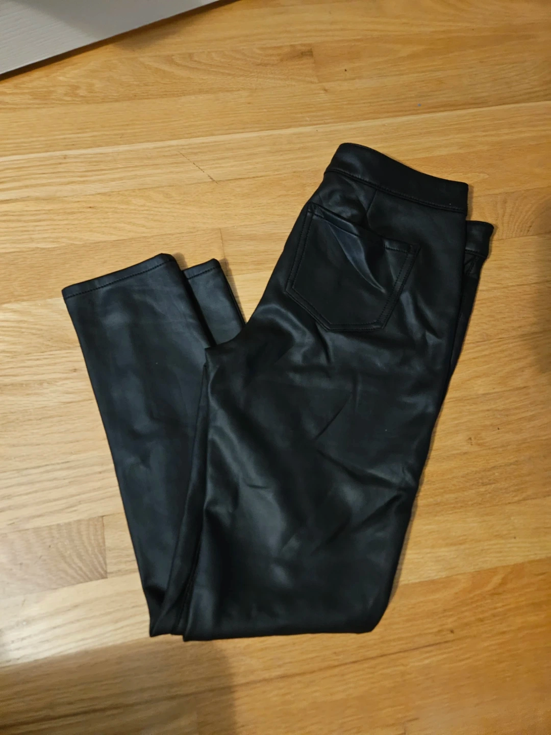 Selling a pair of black faux leather pants. They are jn great condition and would be a stylish addition to your wardrobe!