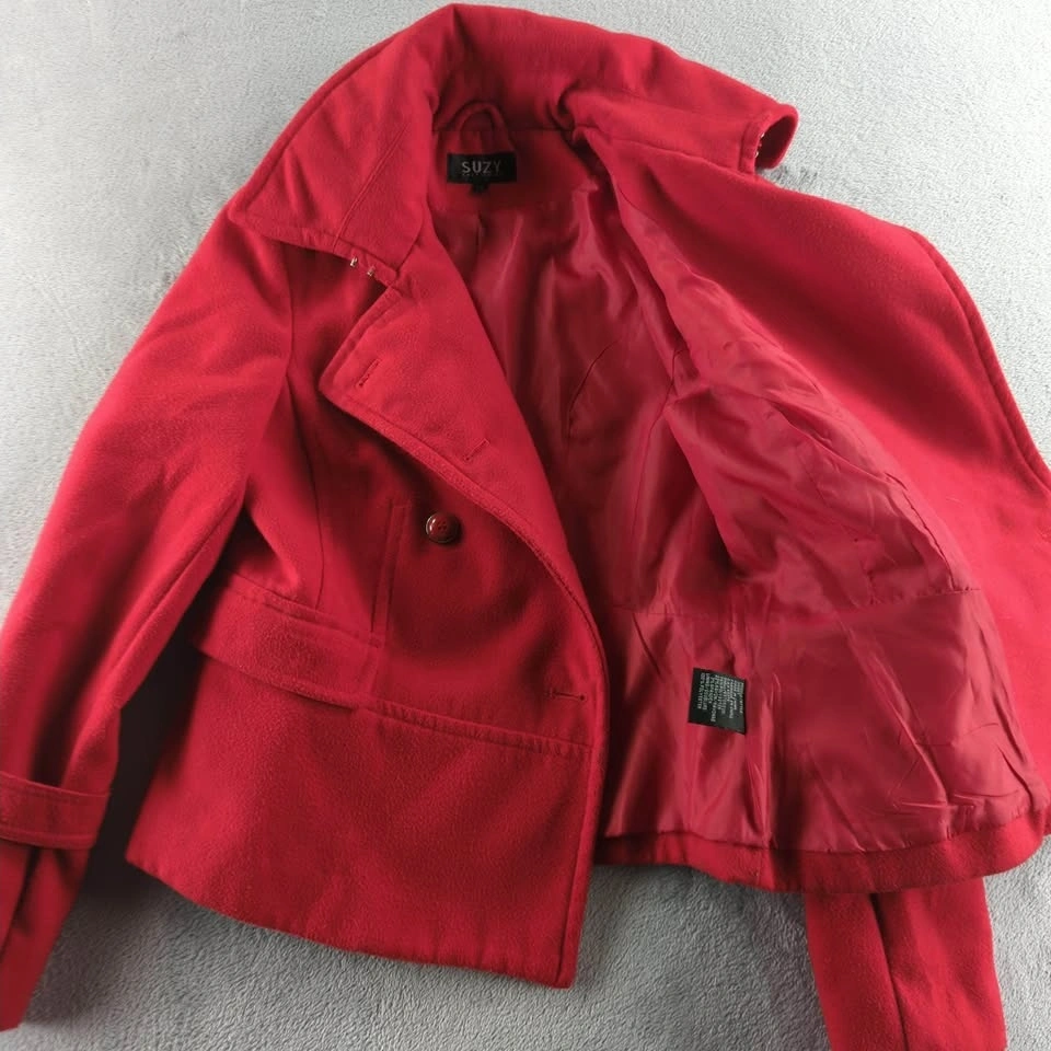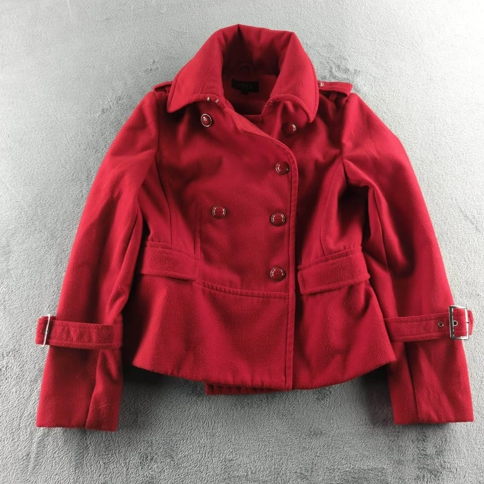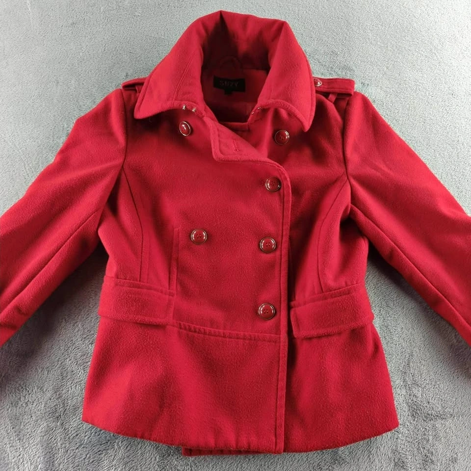 Style: Double-breasted with decorative buttons and shoulder epaulets