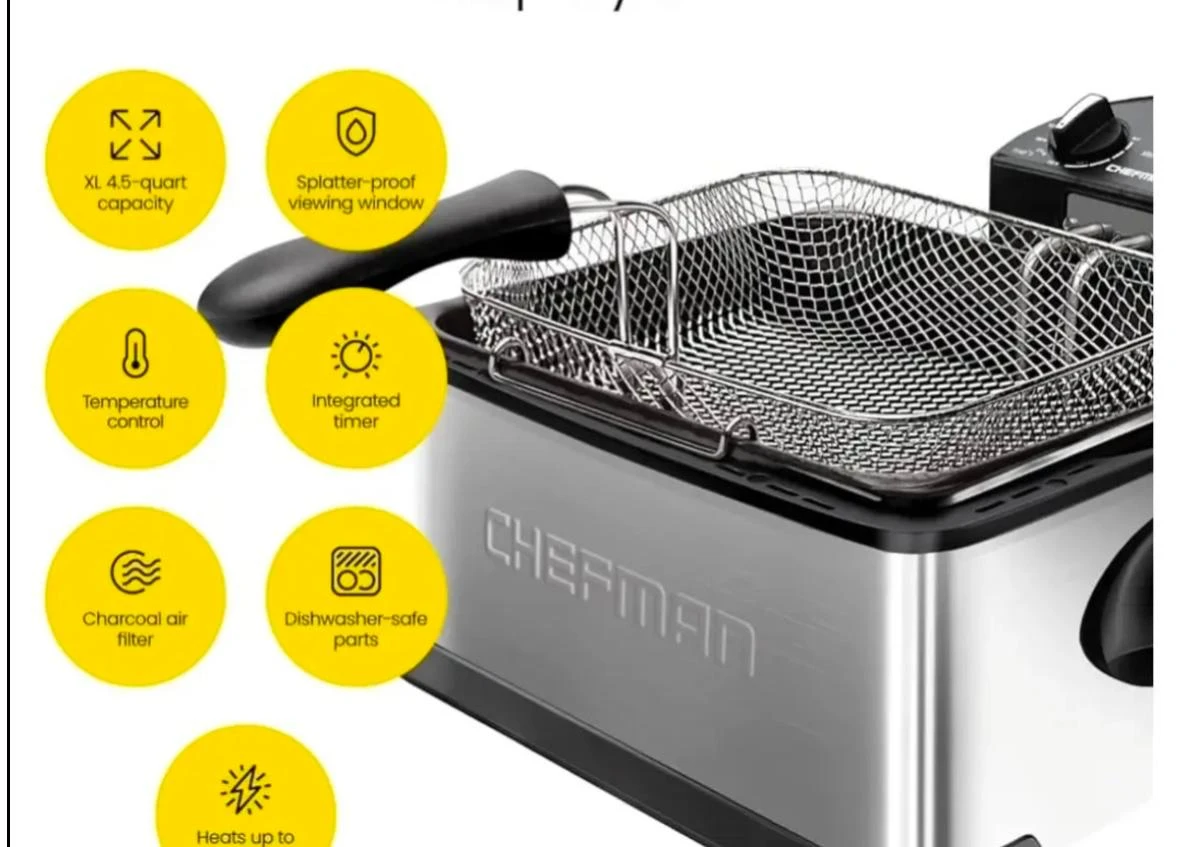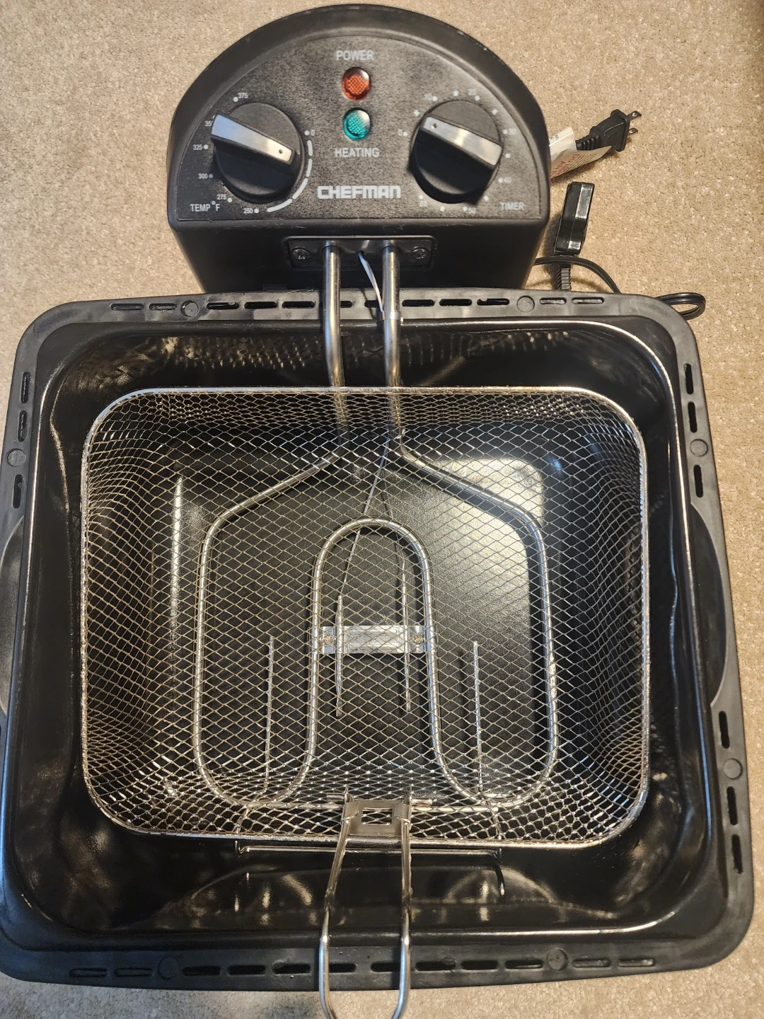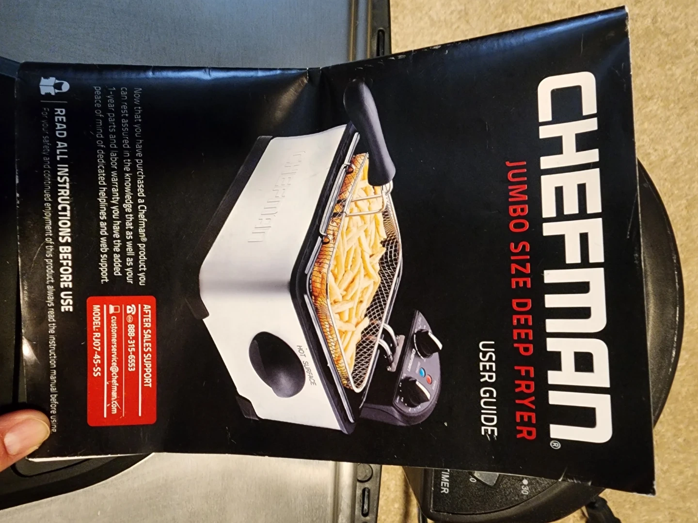 Chefman Jumbo Size Deep Fryer. Brand new, you will see from the filters that it has never been used. Includes removable dishwasher-safe bowl, basket, handle, and user guide. The fryer has a viewing window and permanent aluminum filter. Price is firm, no lowballing please.