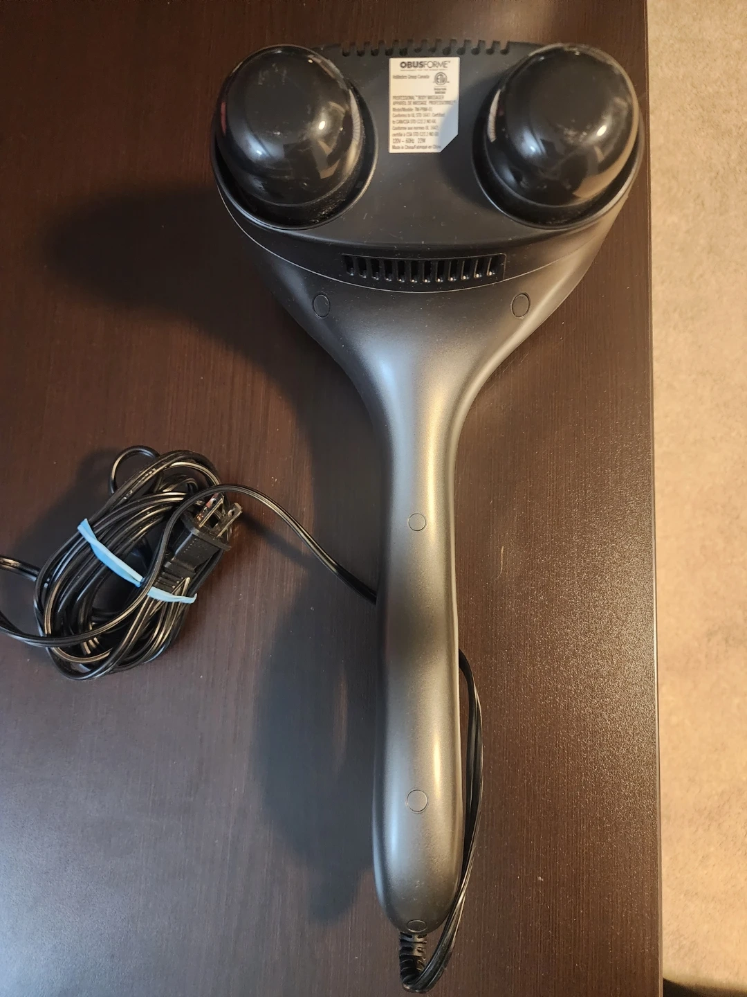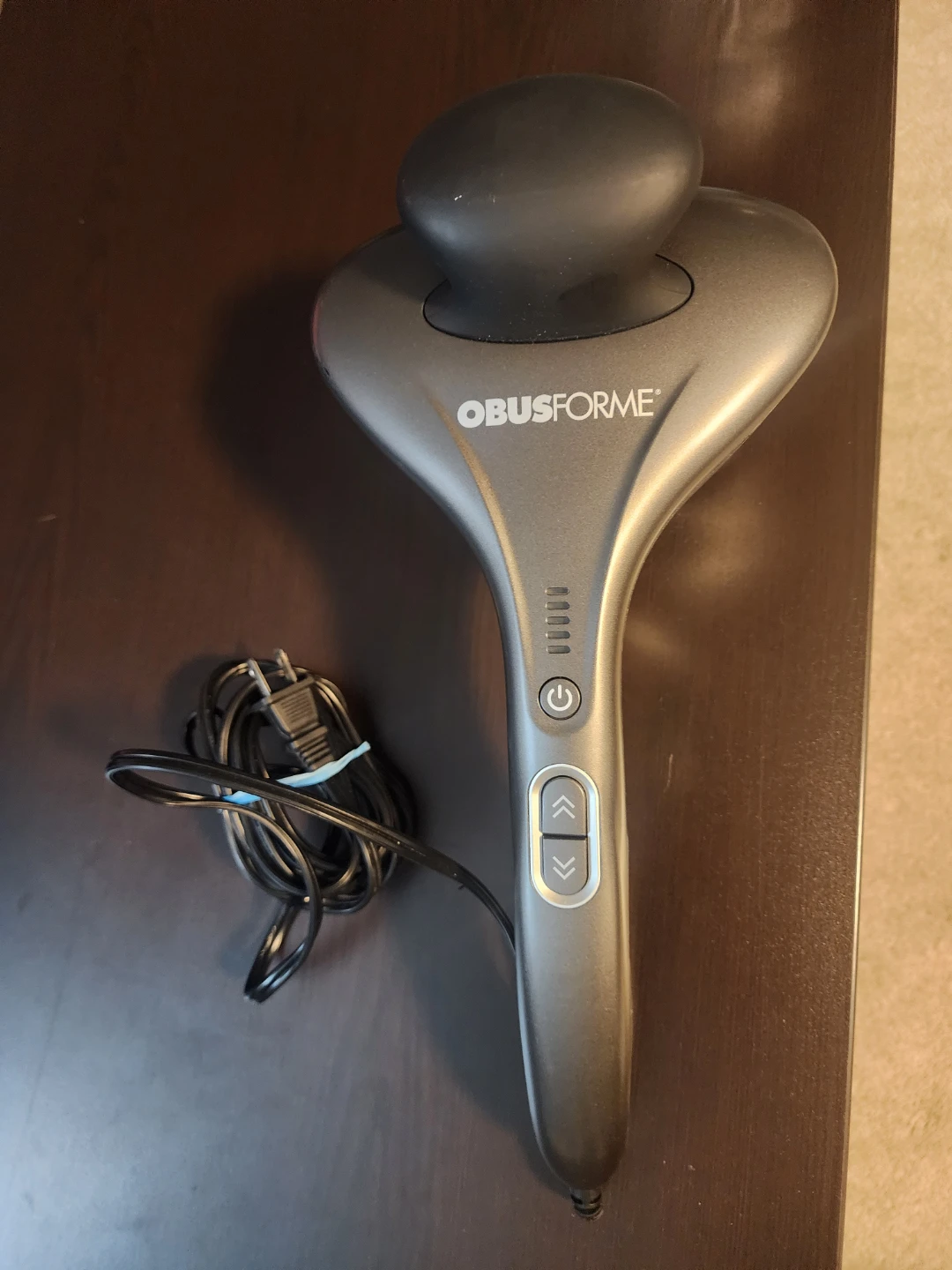 Obusforme Professional Grade Percussion Back Massager. Useful after my surgery, but no longer needed. Deep Tissue Massager, five intensity settings. Non-slip handle, quiet operation. It's in great shape, with new massage heads still in the bag. Ready to help your sore muscles!
