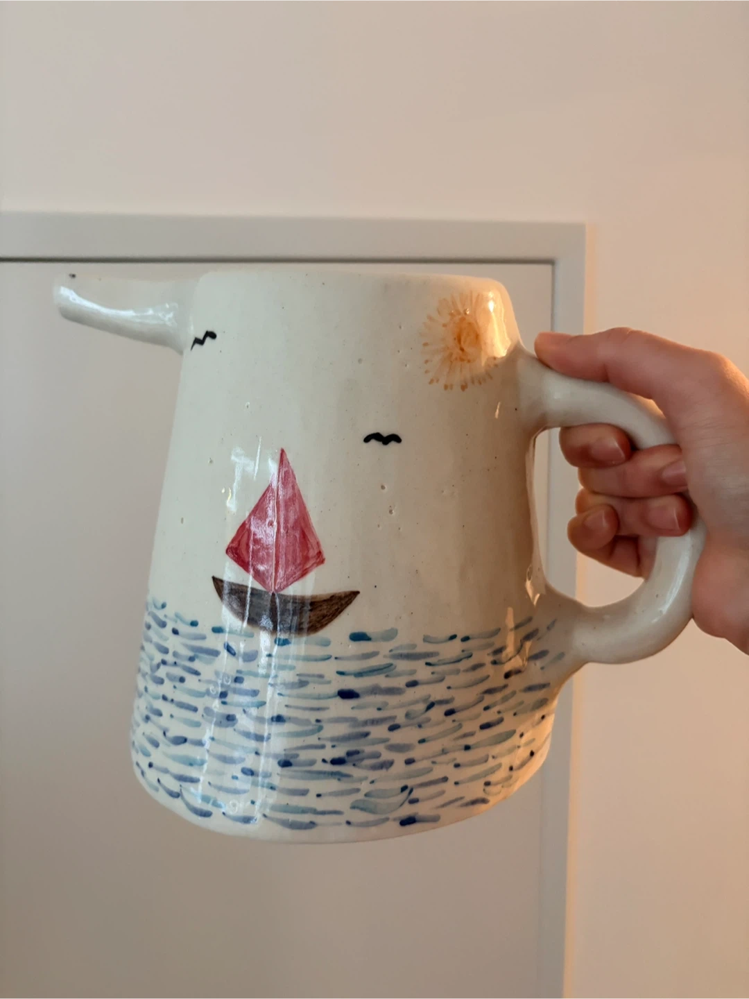 Handmade Ceramic Pitcher with Sailboat Design