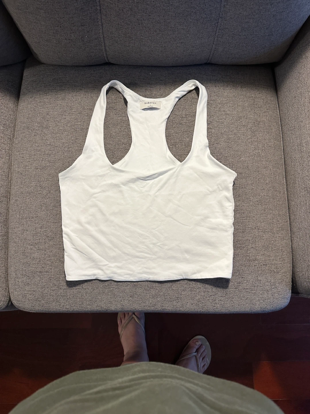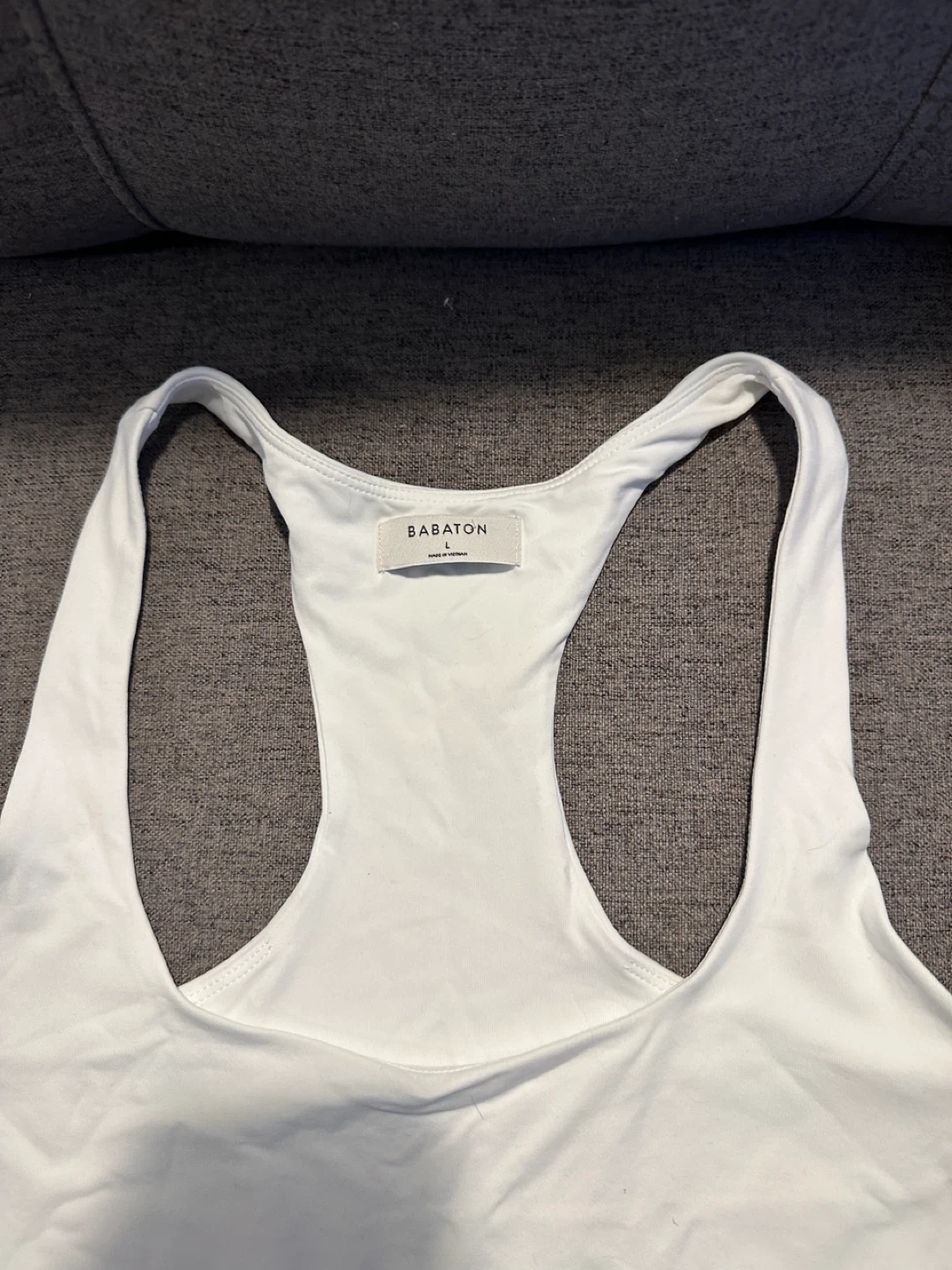 Selling a white tank top from Babaton. It's in great condition and ready for a new home. Perfect for layering or wearing on its own!