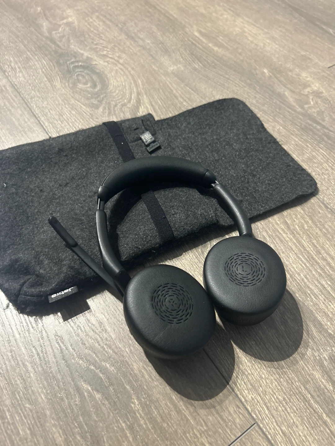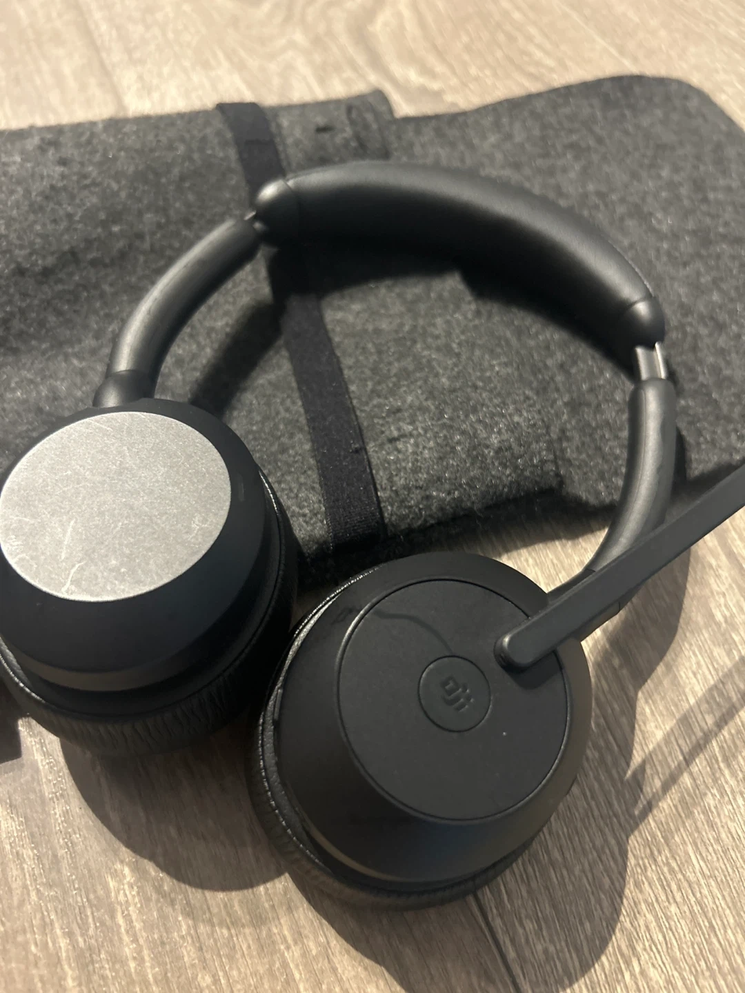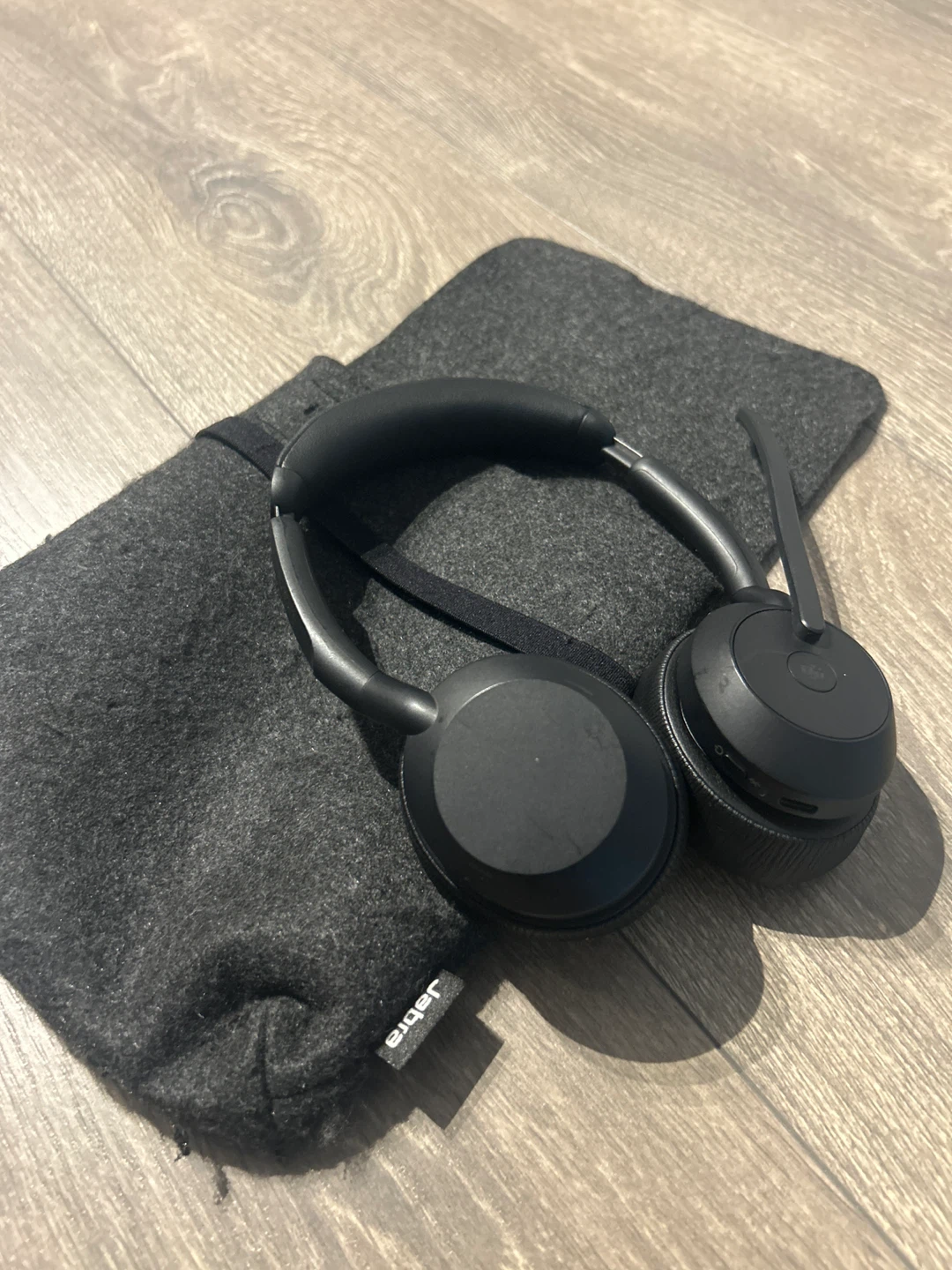 Selling a Jabra Evolve2 55 MS wireless headset in black! I used this a half year, but it's in great condition and comes with its original carrying pouch. Perfect for work or study, offering clear sound and comfortable wear. Feel free to ask any questions!