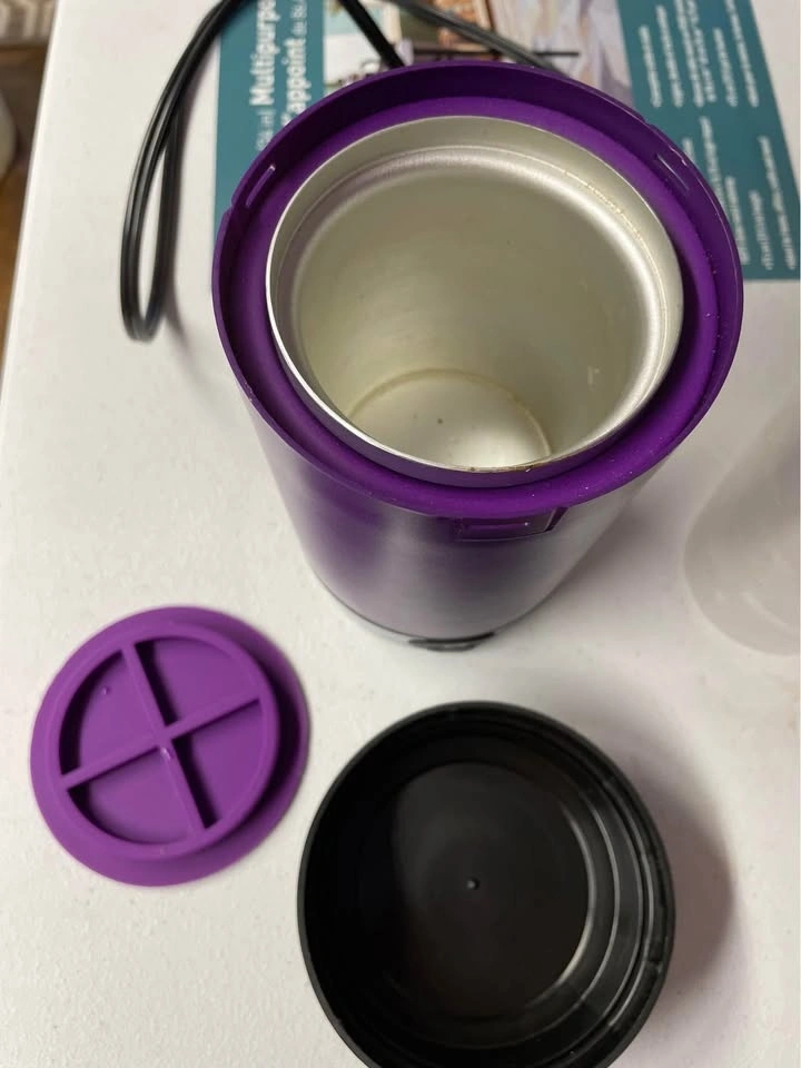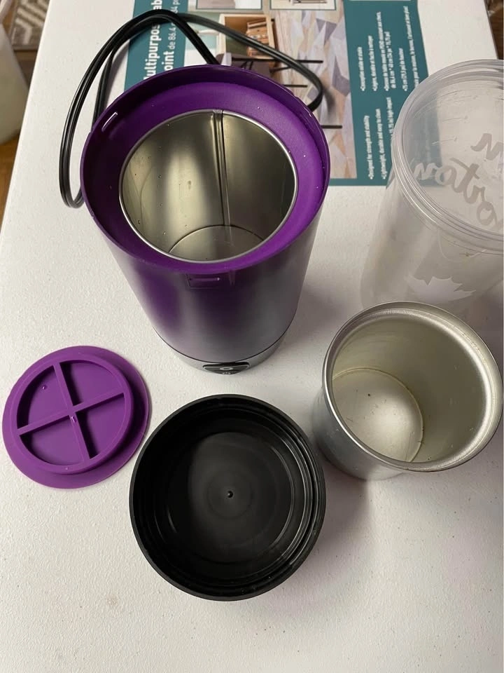 Purple Ardent Flex Nova Decarboxylator with multiple parts. Has a stainless steel interior and a black lid and base. Comes with an extra container. In good condition, minor signs of use. Pickup at Scarborough warden and mcnicol